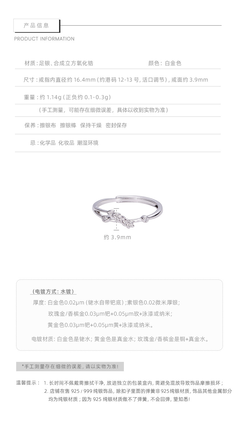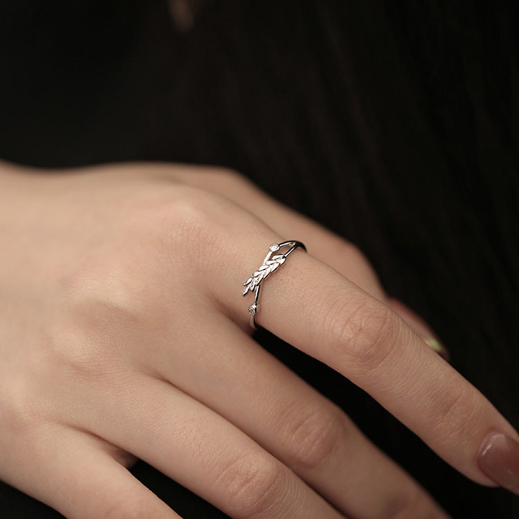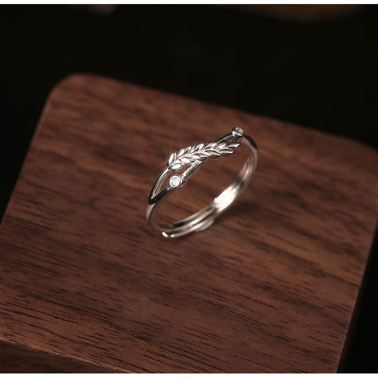 F廠【DQ8281R】S999純銀小眾設計感麥穗戒指女ins時尚田園風百搭指環食指戒 25.09-3
