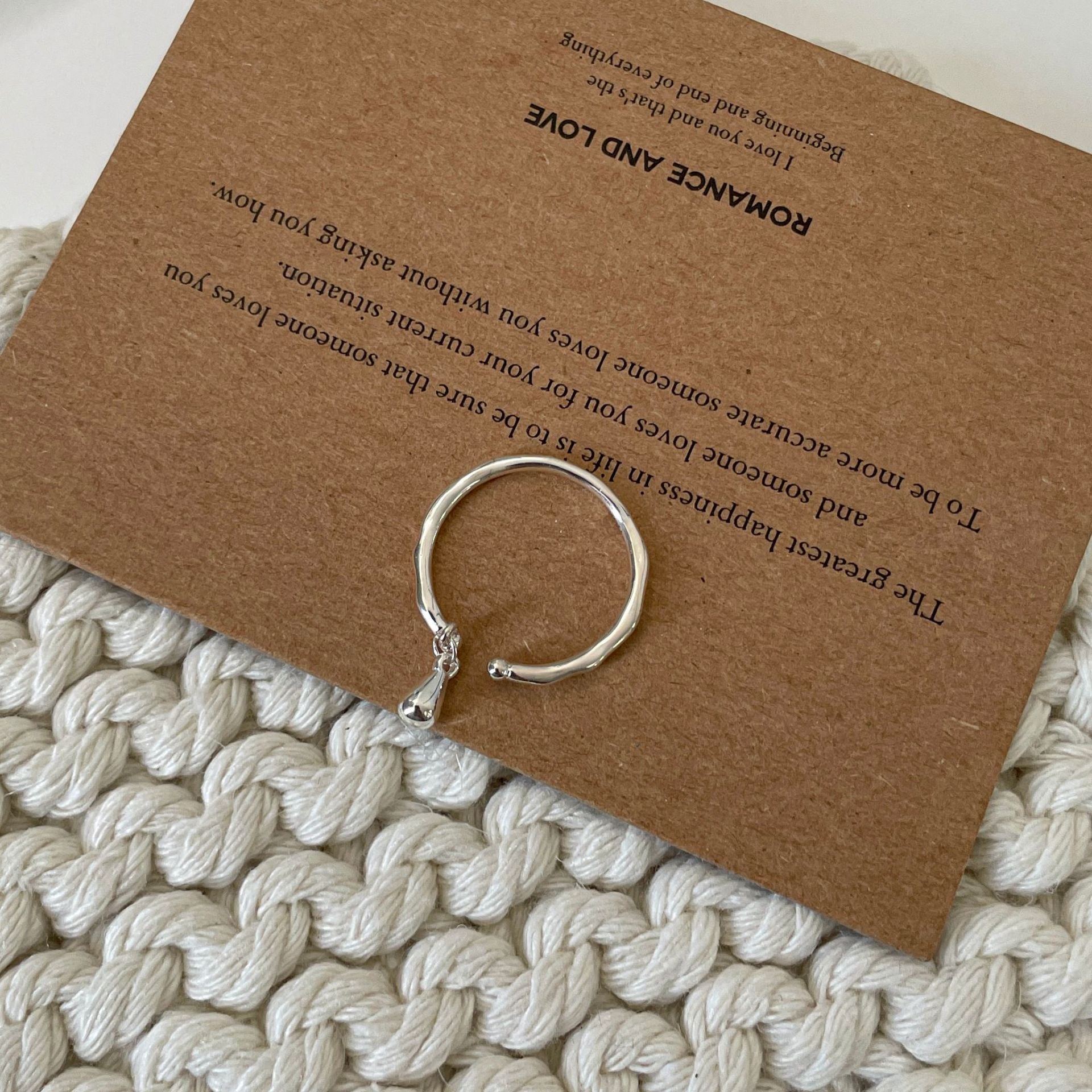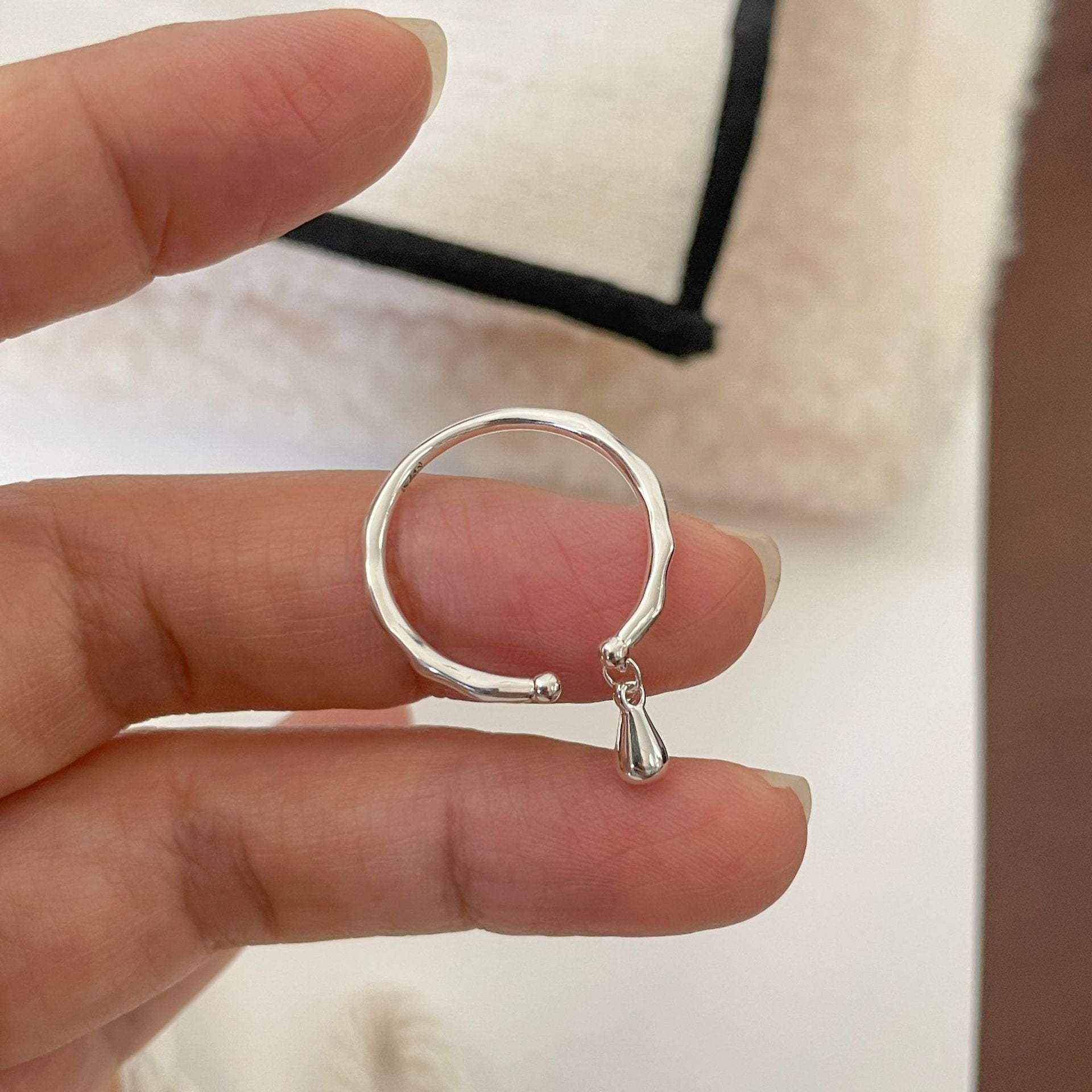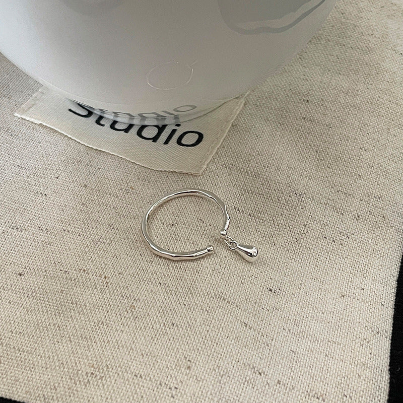 F廠【DQ8329R】S925純銀日韓小眾設計水滴戒指女氣質簡約不規則肌理開口指環 25.10-2