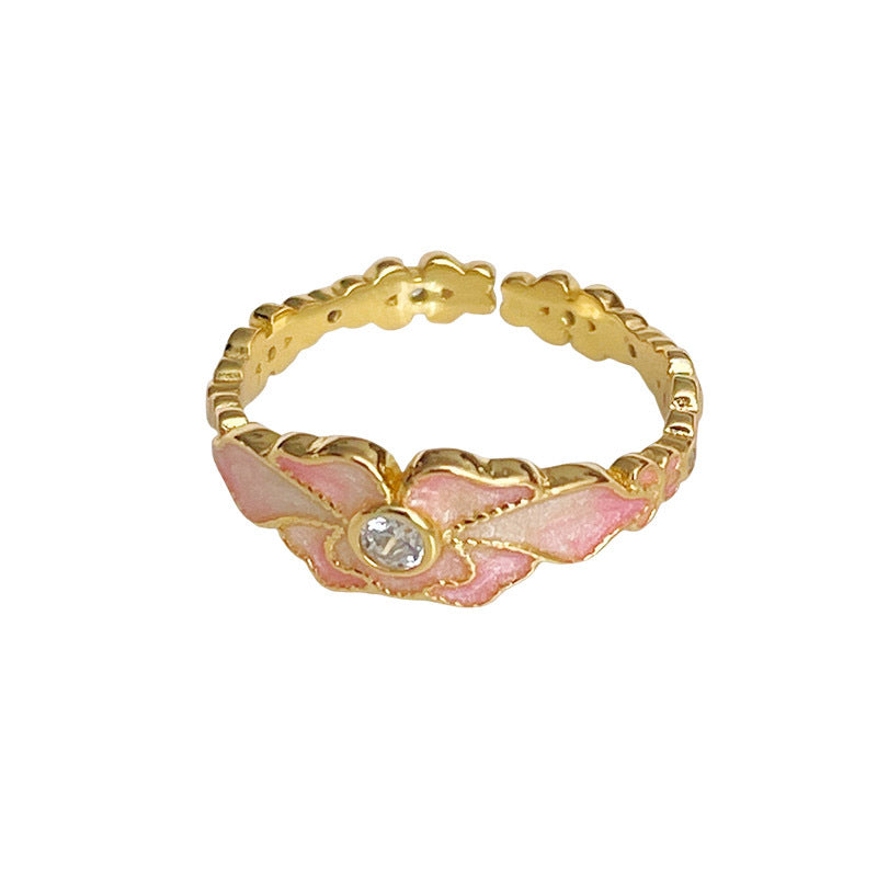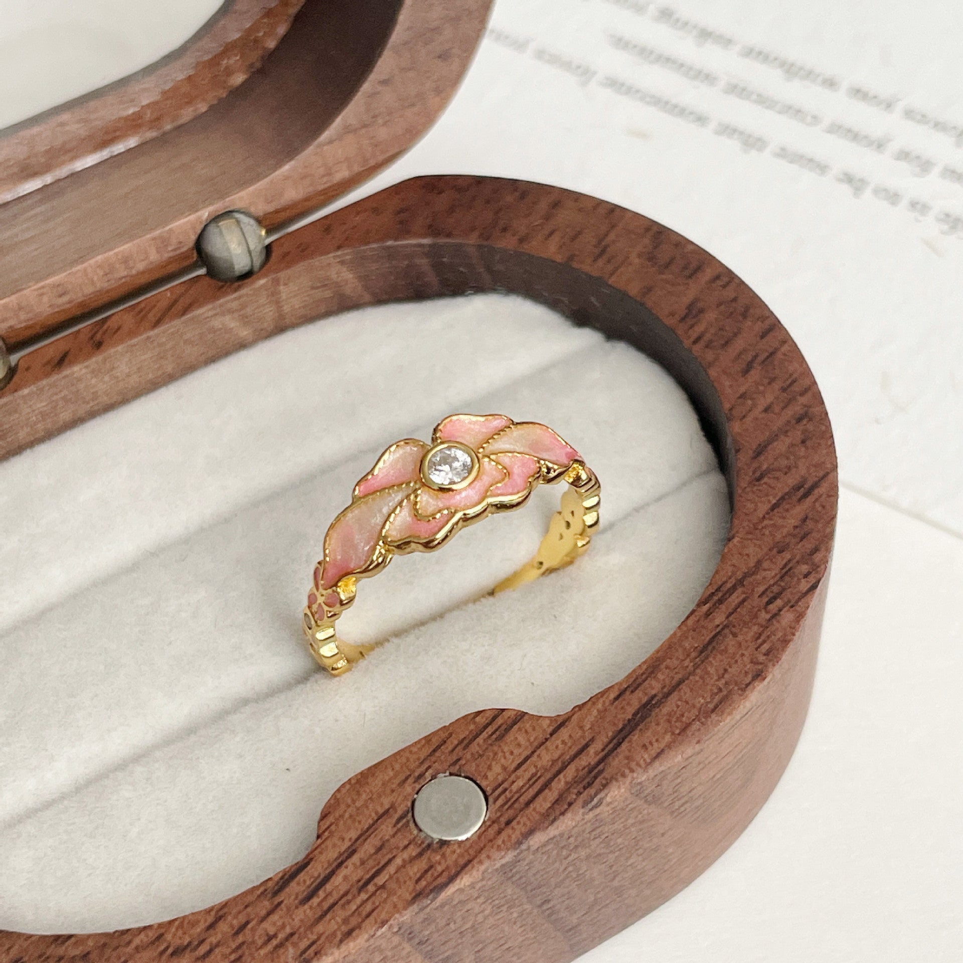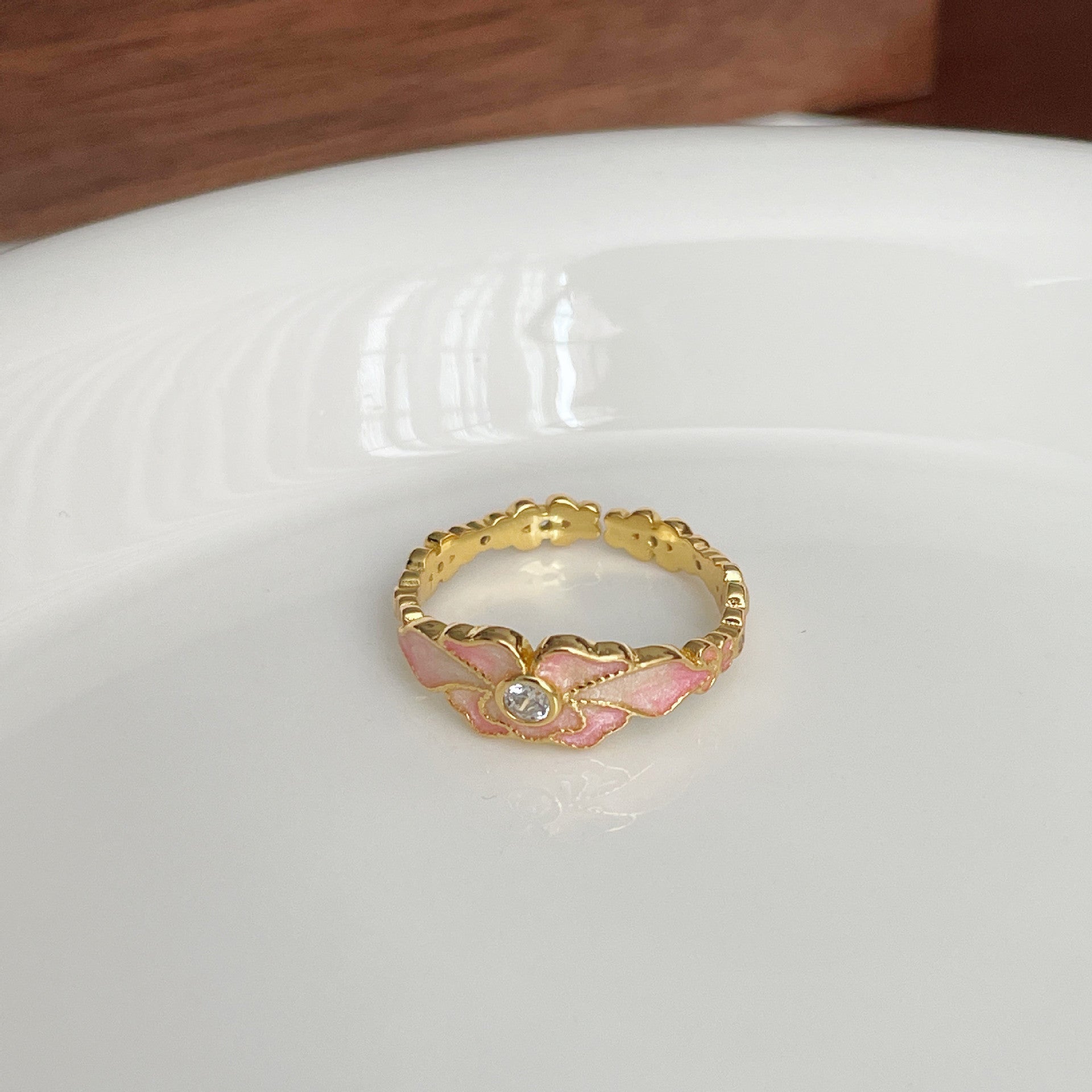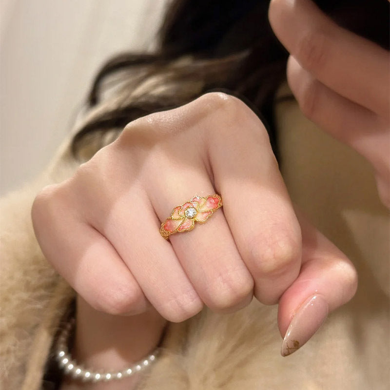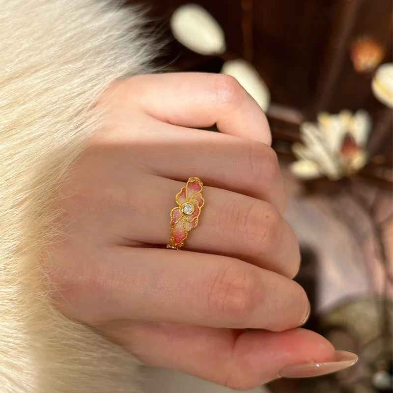 F廠【DQ8417R】S925純銀復古中式逃之夭夭戒指女溫柔氣質漸變桃花甜美食指戒 25.03-3