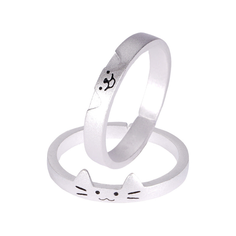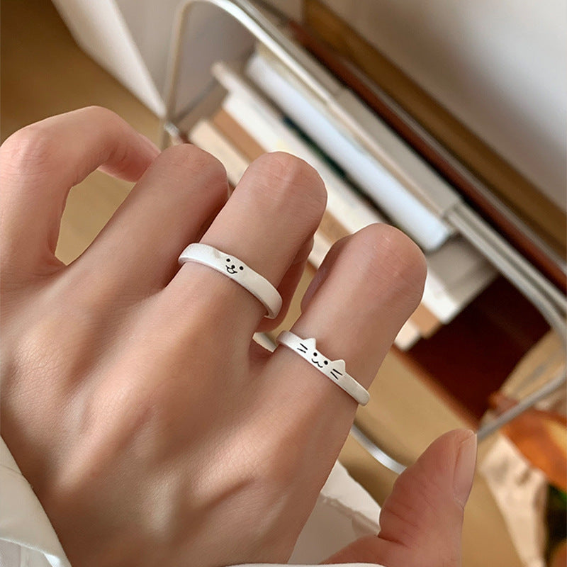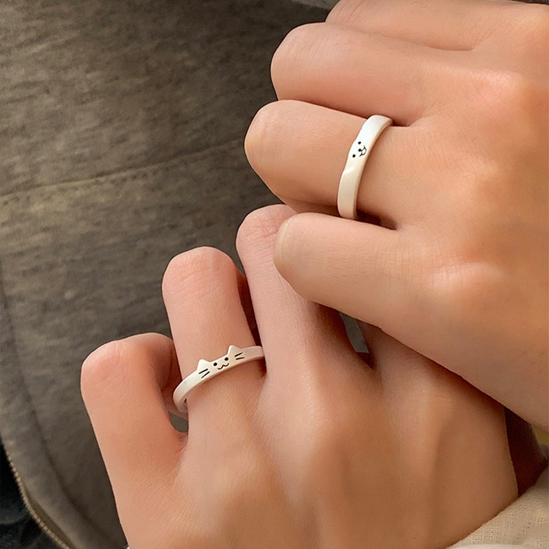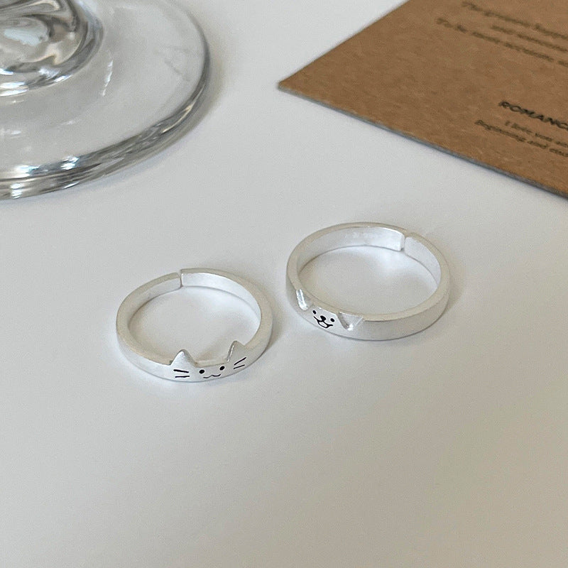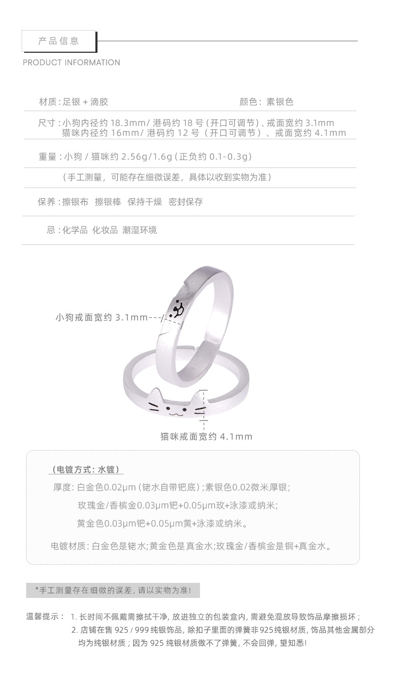 E廠【DQ8419R】S999純銀可愛小貓小狗情侶對戒男女個性疊戴戒指創意設計指環 25.10-3
