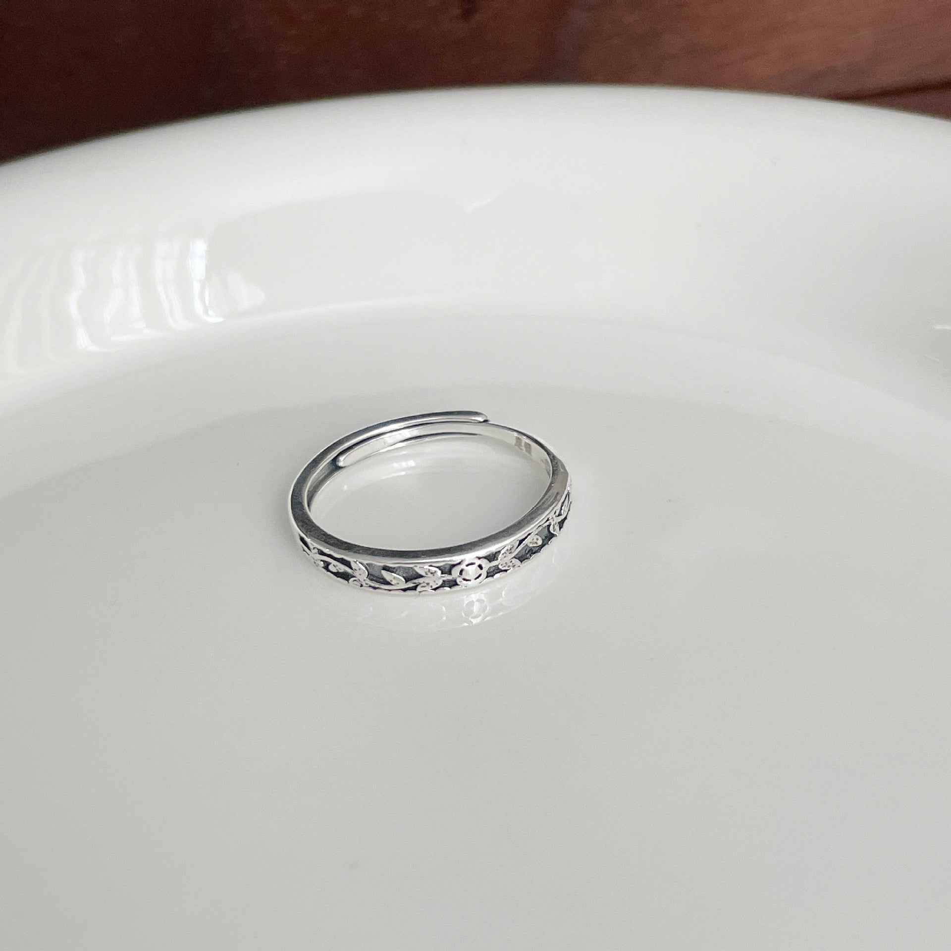 F廠【DQ8437R】999足銀新中式國風花朵戒指女輕奢小眾做舊疊戴純銀食指戒潮 25.03-4