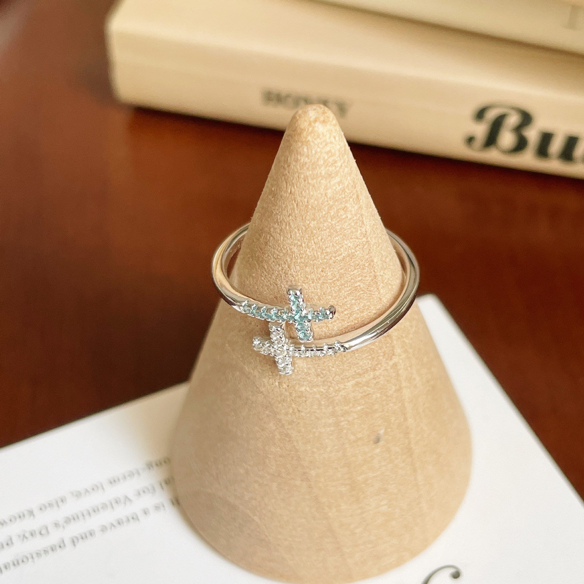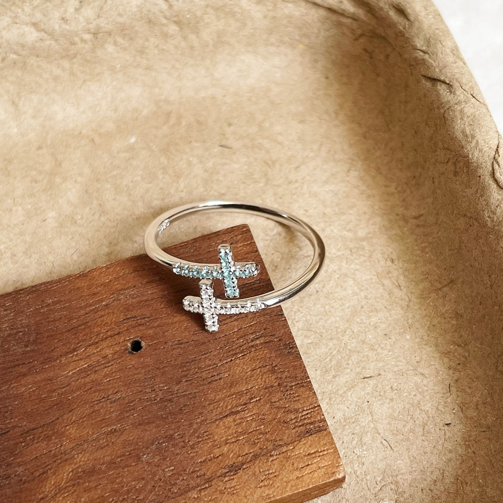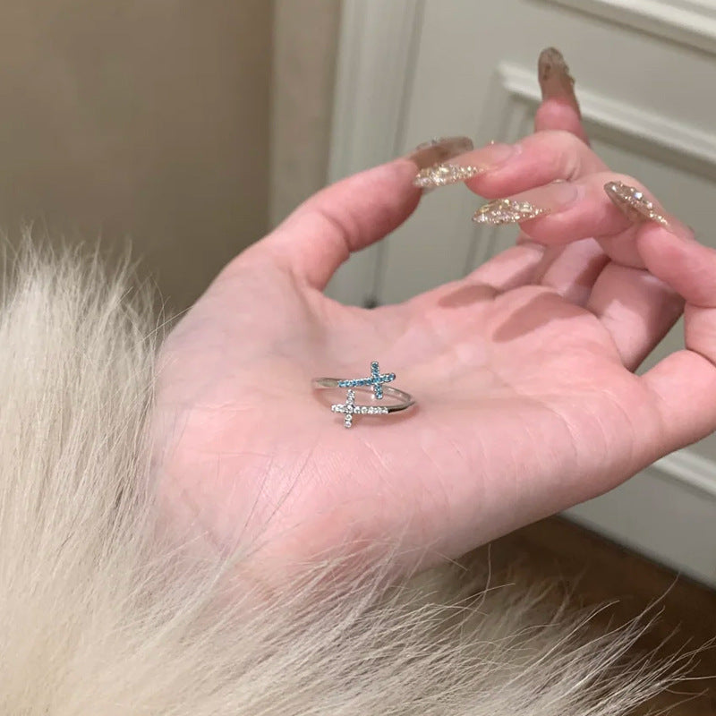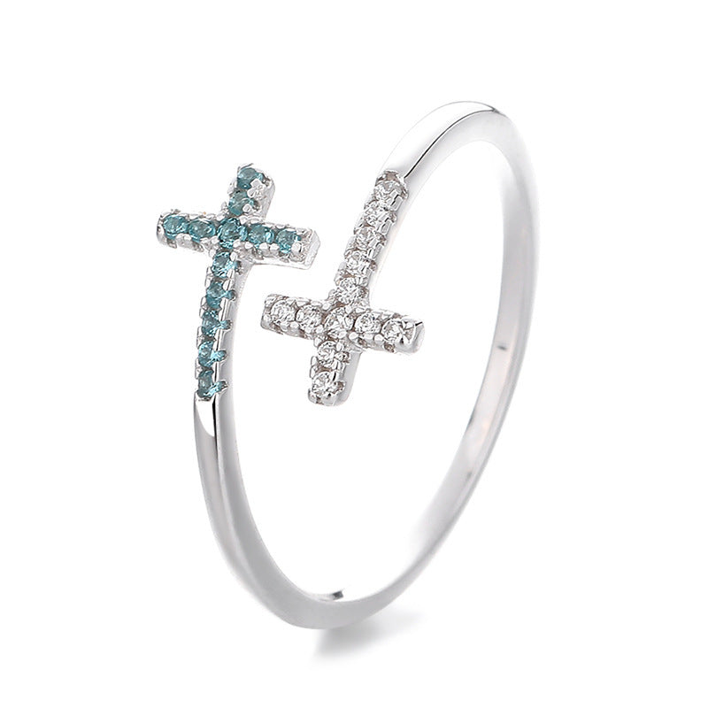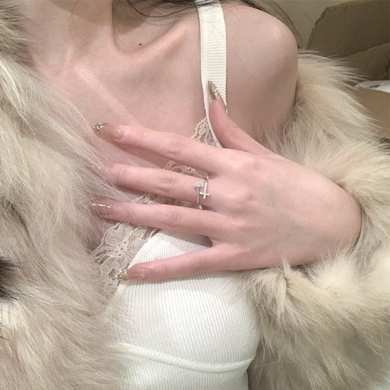 F廠【DQ8489R】ins冷淡風雙層十字架戒指女S925純銀韓系高級感鋯石開口指環 25.05-5