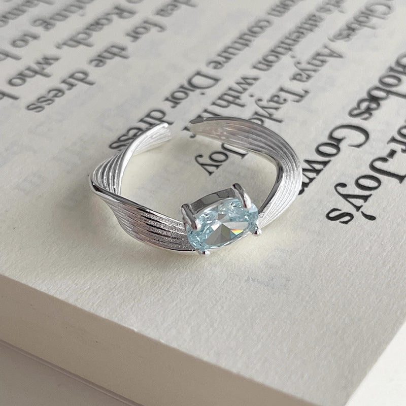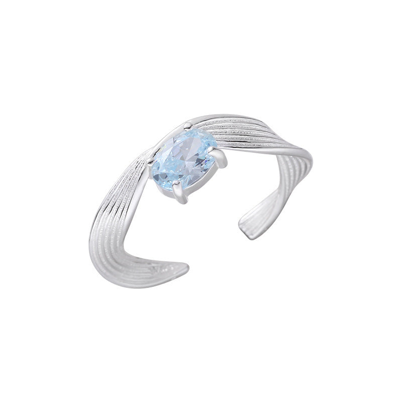 F廠【DQ8492R】S925純銀小小新鮮藍色閃鋯戒指女幾何波浪個性時髦開口食指戒 25.03-2