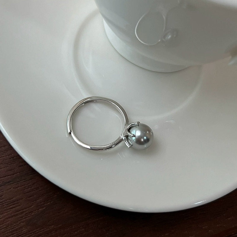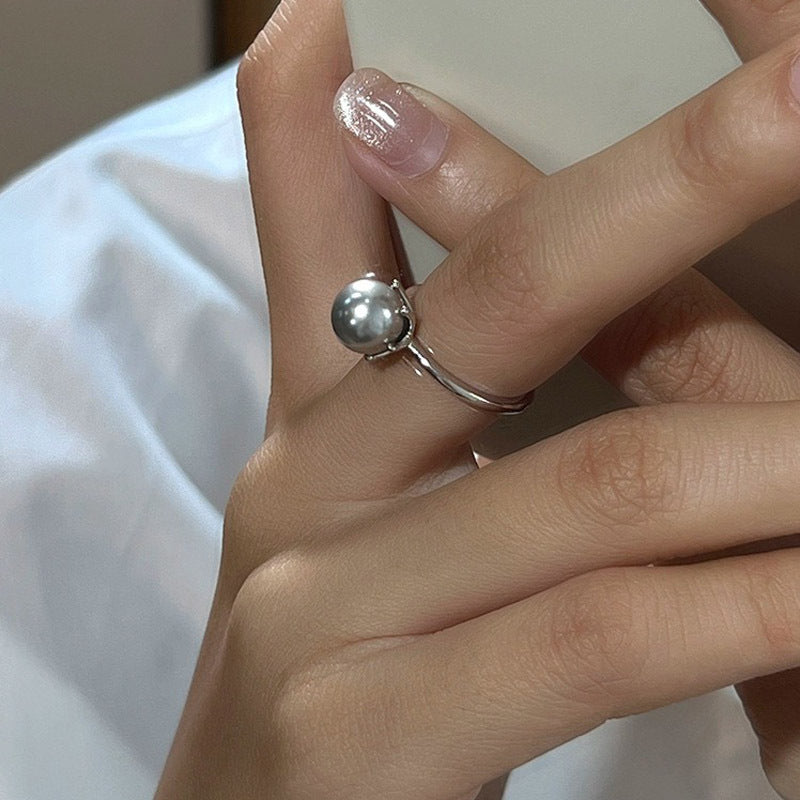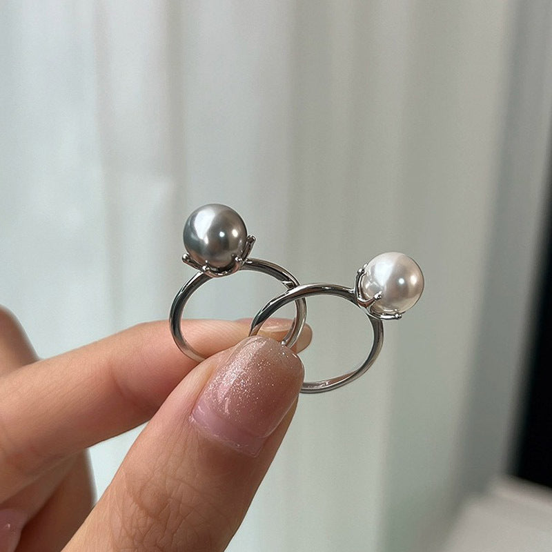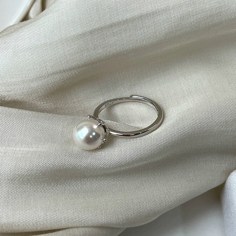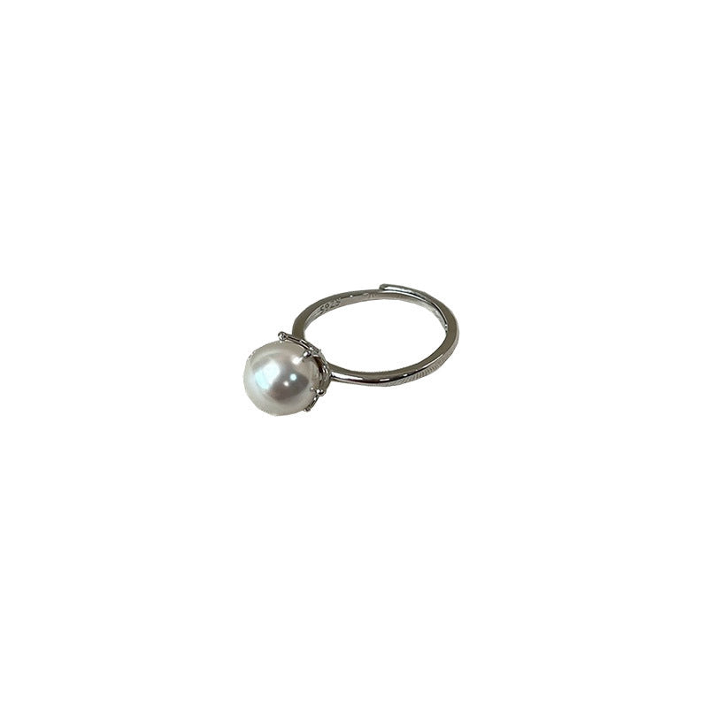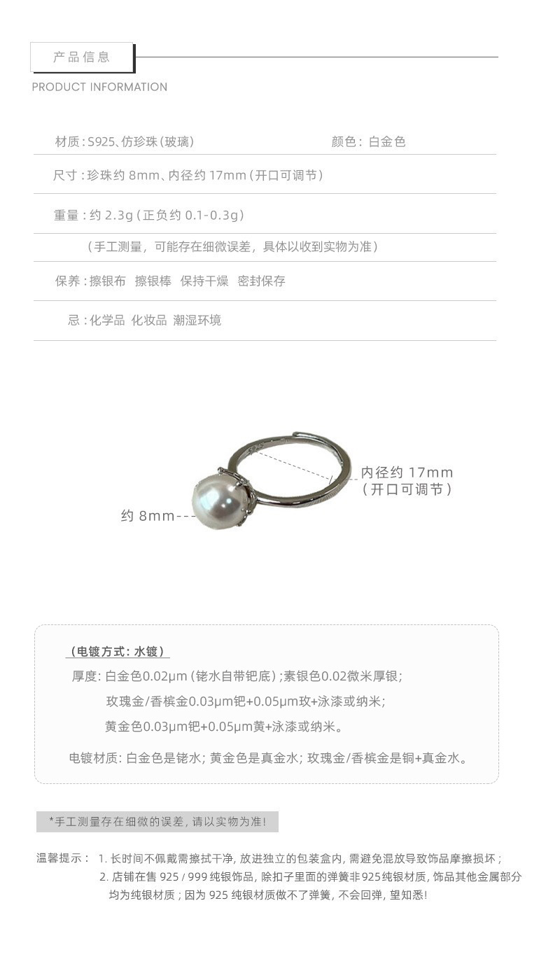 F廠【DQ8496R】S925純銀簡約百搭款素圈正圓仿珍珠戒指女氣質優雅開口戒指環 25.09-4