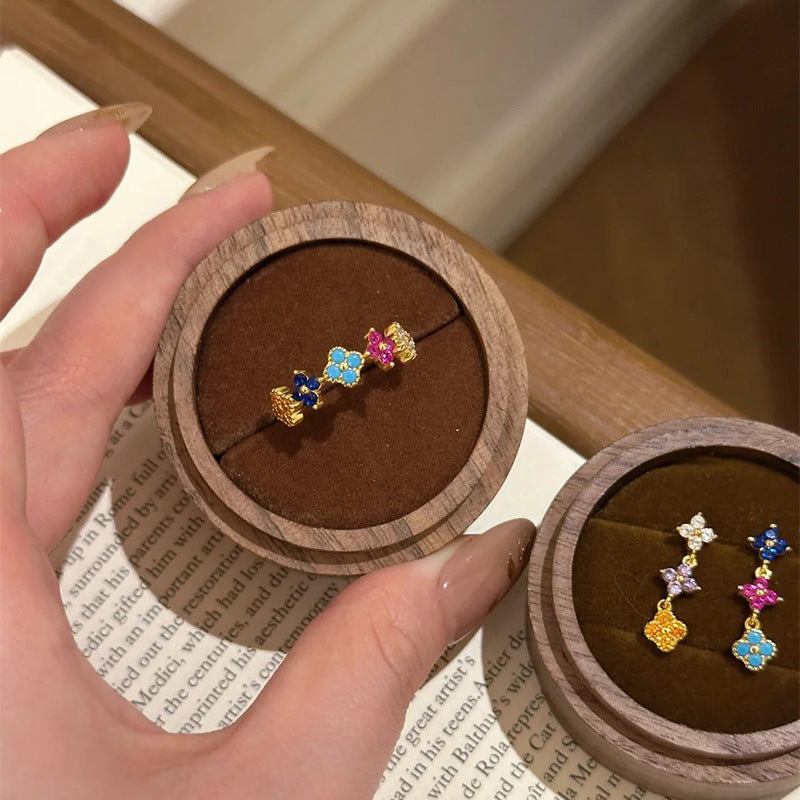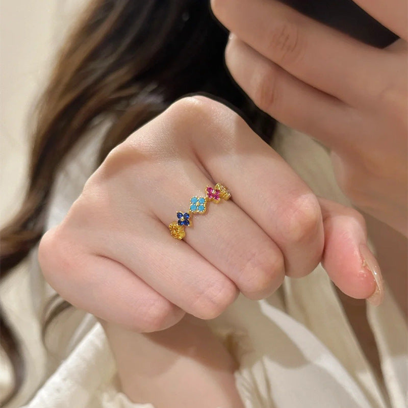 F廠【DQ8510R】S925純銀彩色四葉草戒指女高級感輕奢彩虹鋯石戒指小紅書爆款 25.08-5