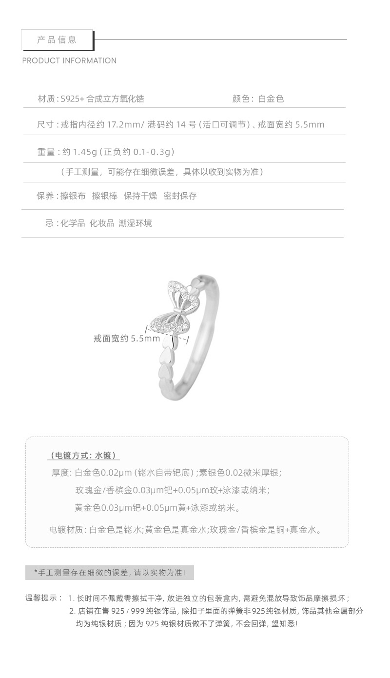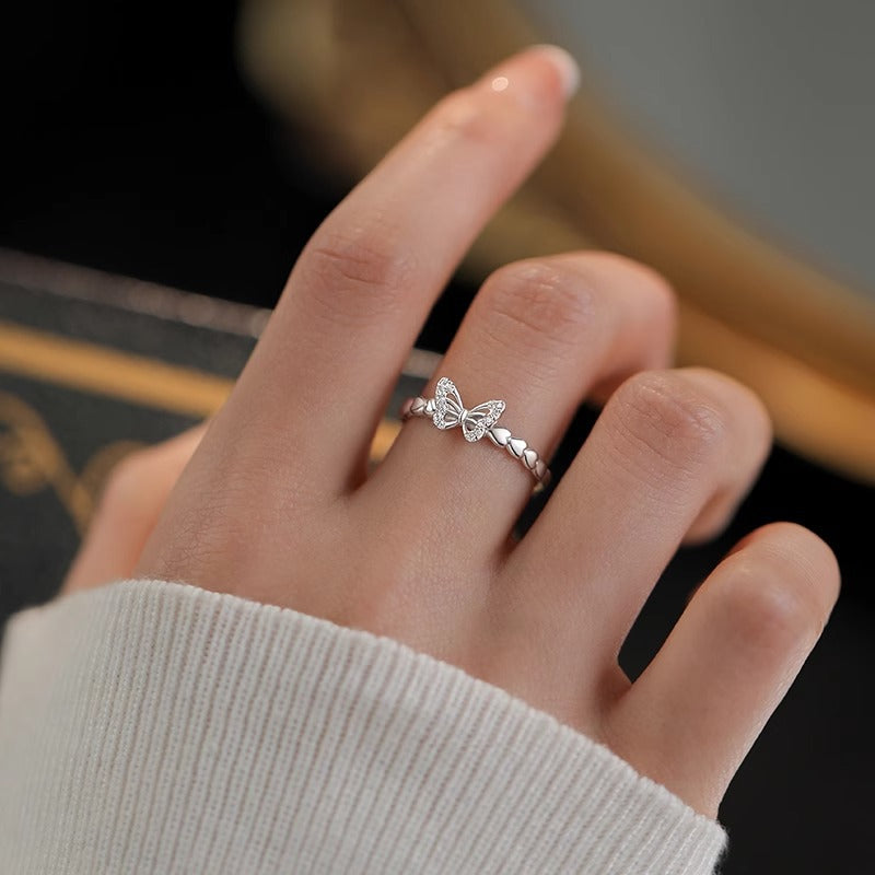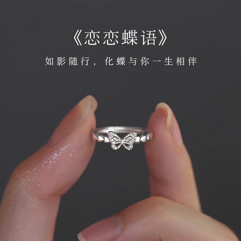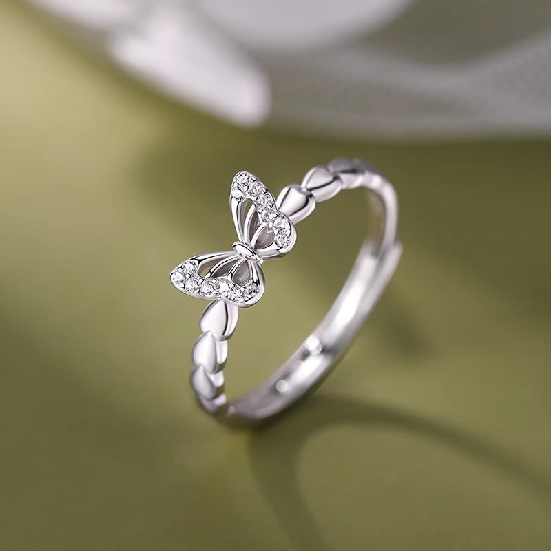 F廠【DQ8549R】小眾設計蝴蝶戒指女S925純銀創意小創意鏤空微鑲素圈開口指環 25.07-4
