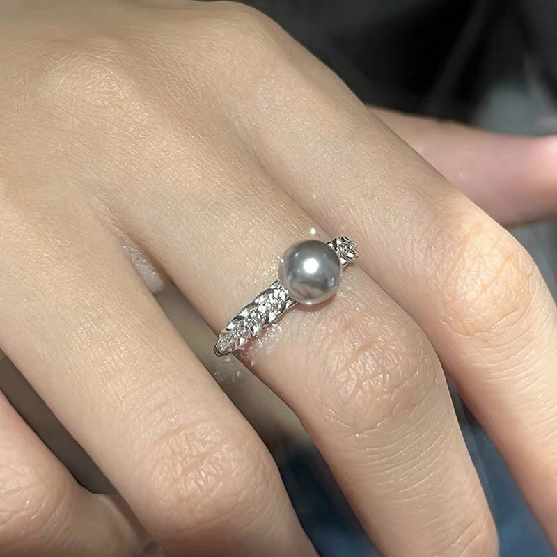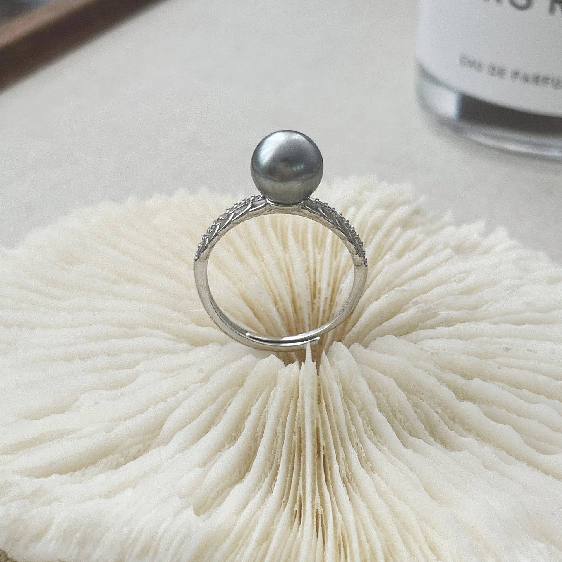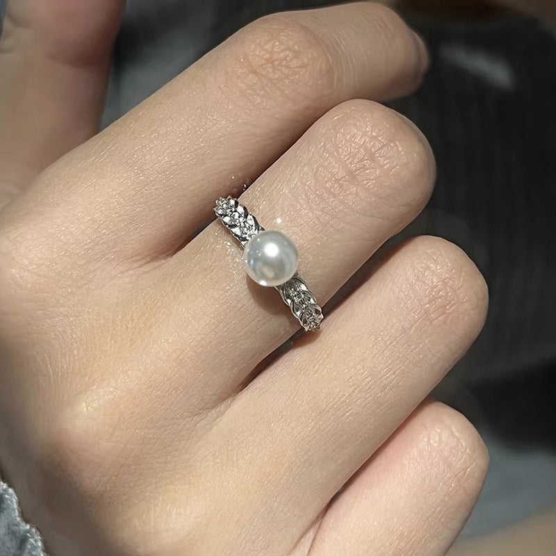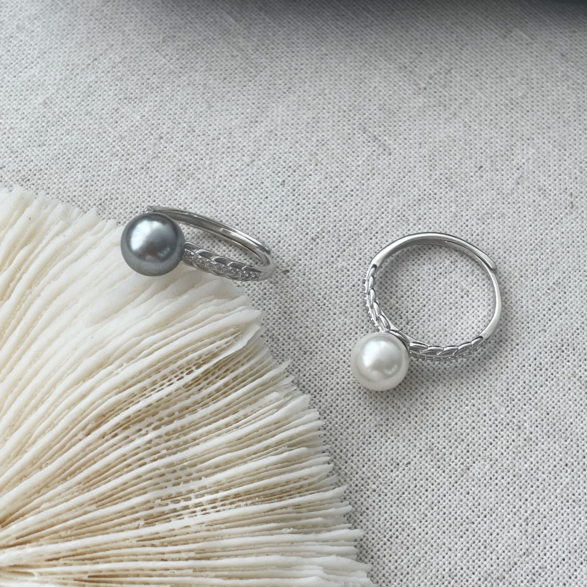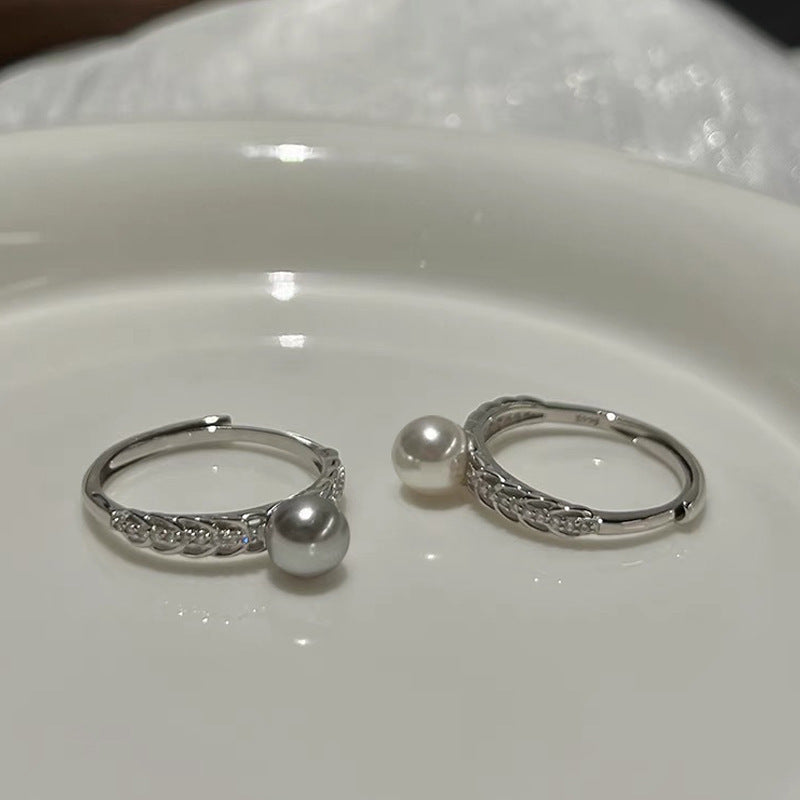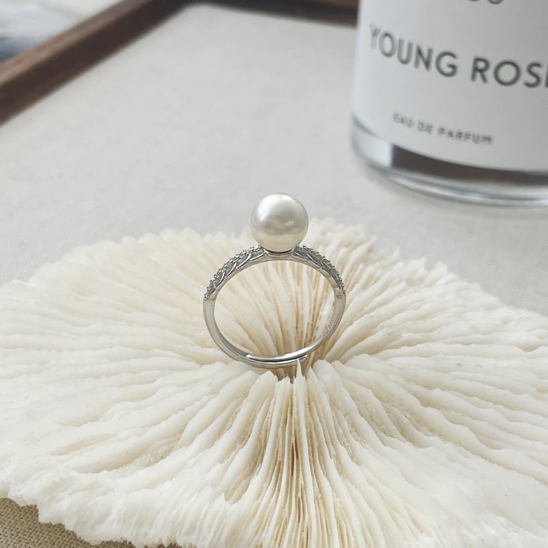 F廠【DQ8551R】輕奢高級感S925純銀麥穗鋯石正圓仿珍珠戒指女小眾設計活口戒 25.09-4
