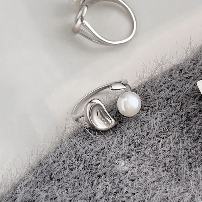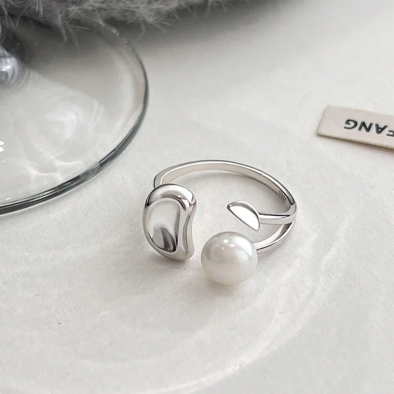 F廠【DQ8555R】小眾設計感天然珍珠戒指女S925純銀韓系簡約輕奢豆豆開口戒指 25.08-1