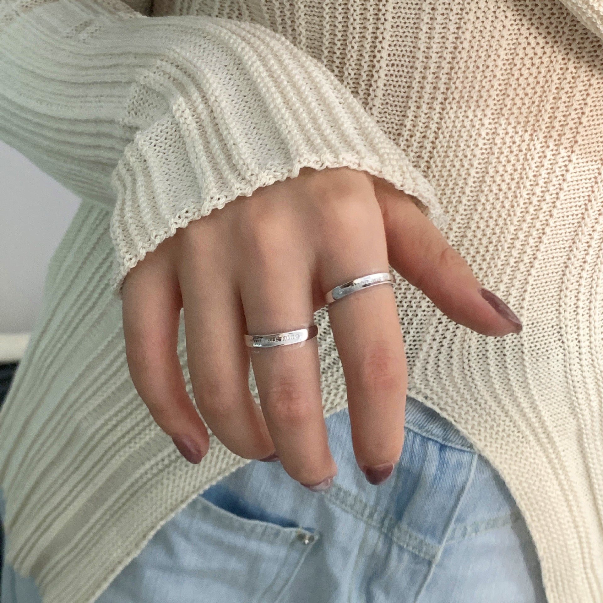 F廠【DQ8574R】S925純銀英文字母情侶戒指一對小眾高級感ins字母開口戒 25.01-1