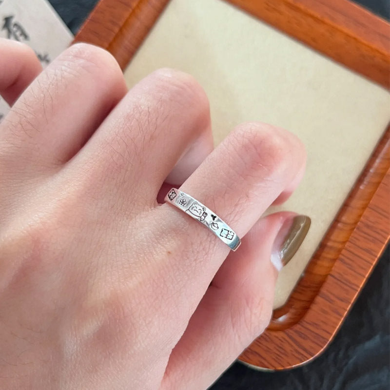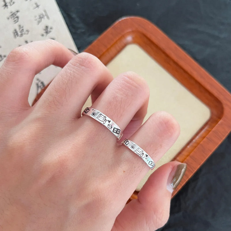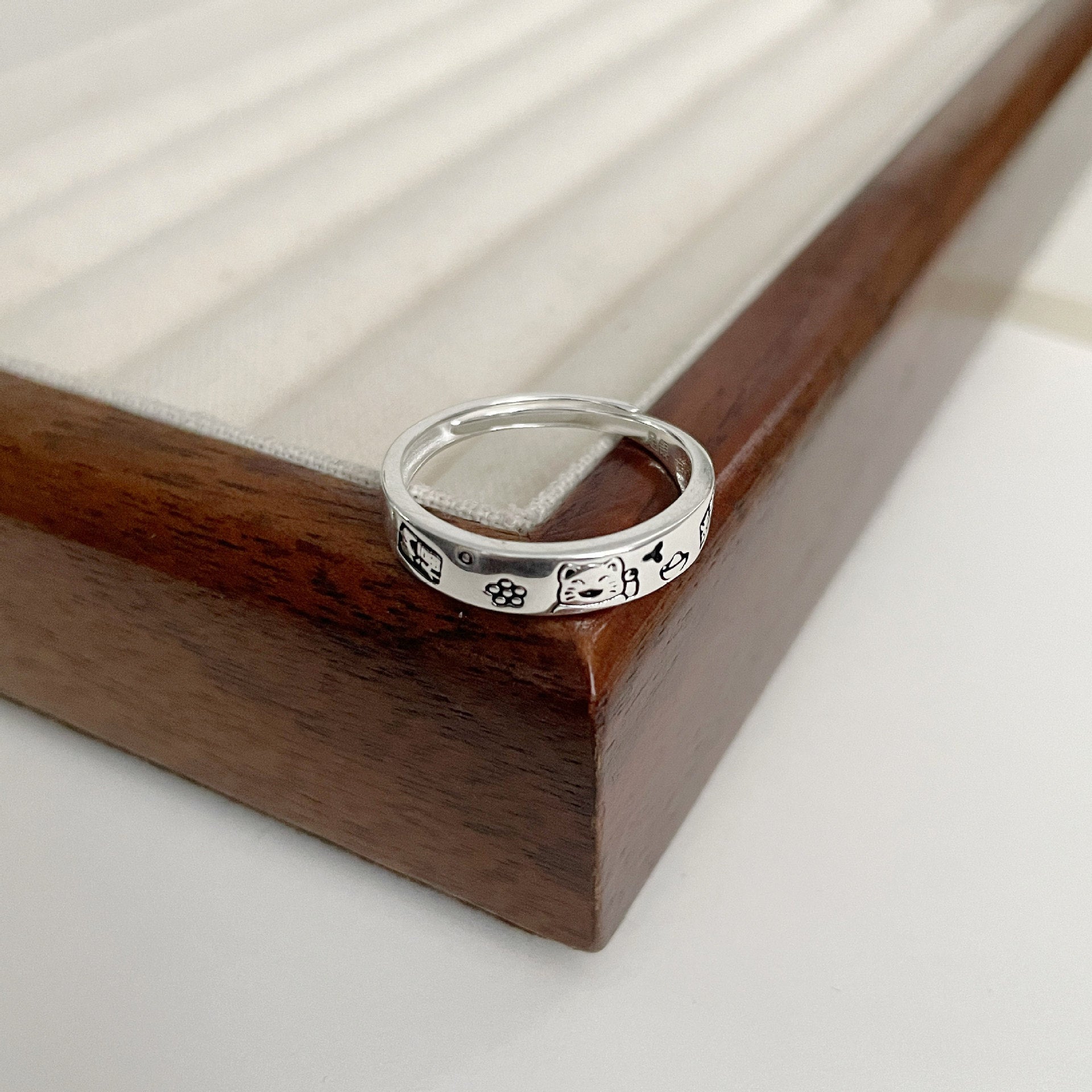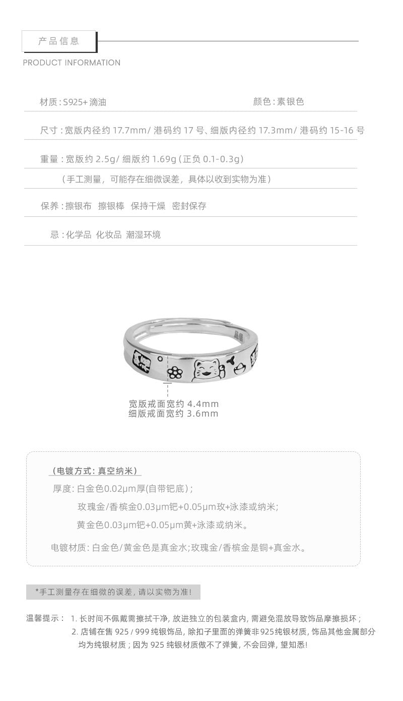 F廠【DQ8593R】999足銀新中式吉言貓咪戒指女時尚簡約納福小貓純銀推拉指環 25.04-2