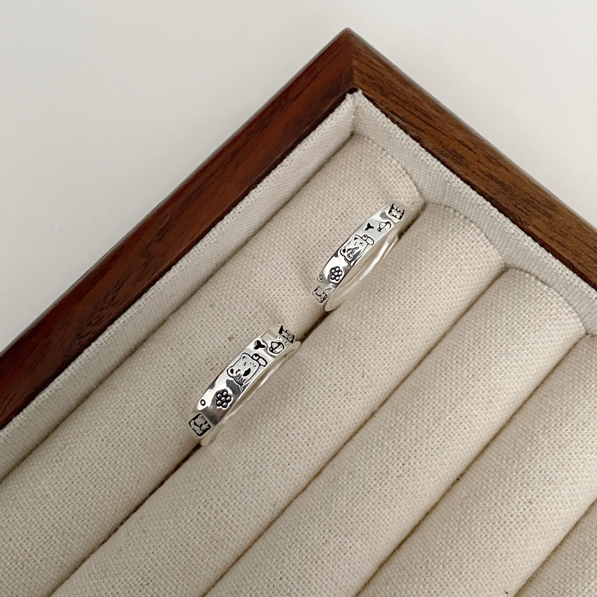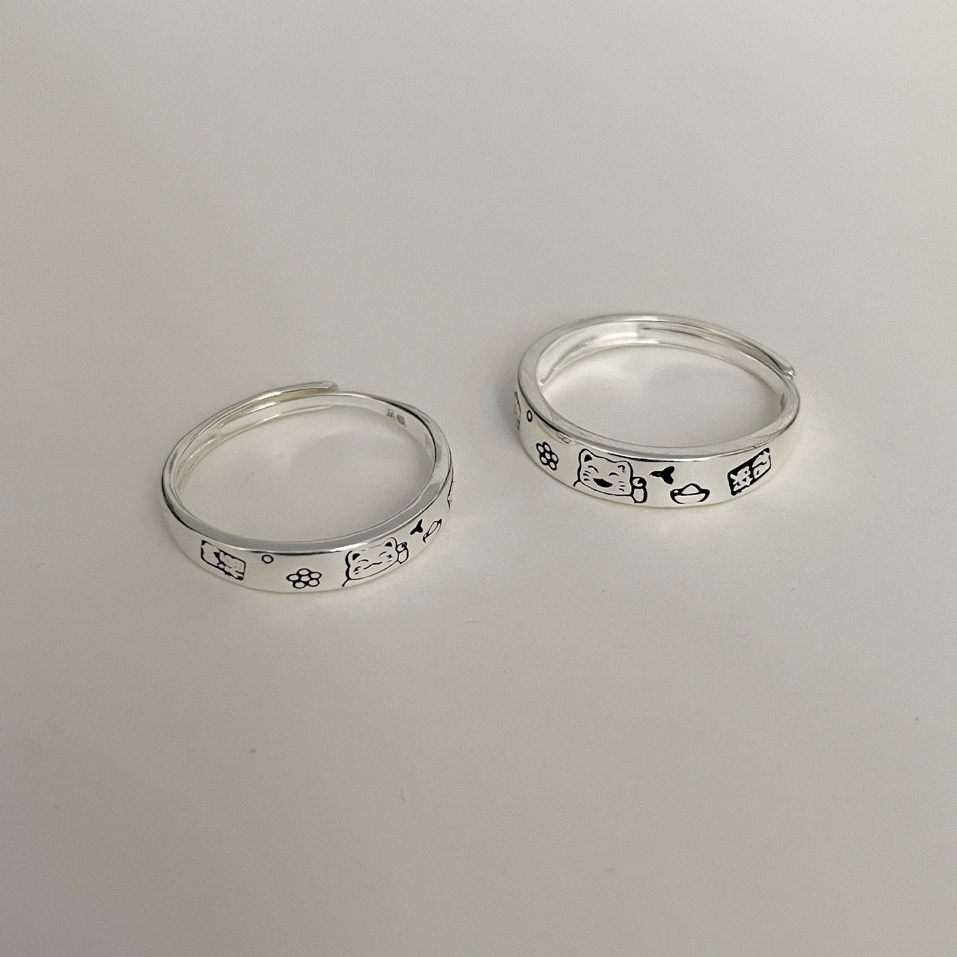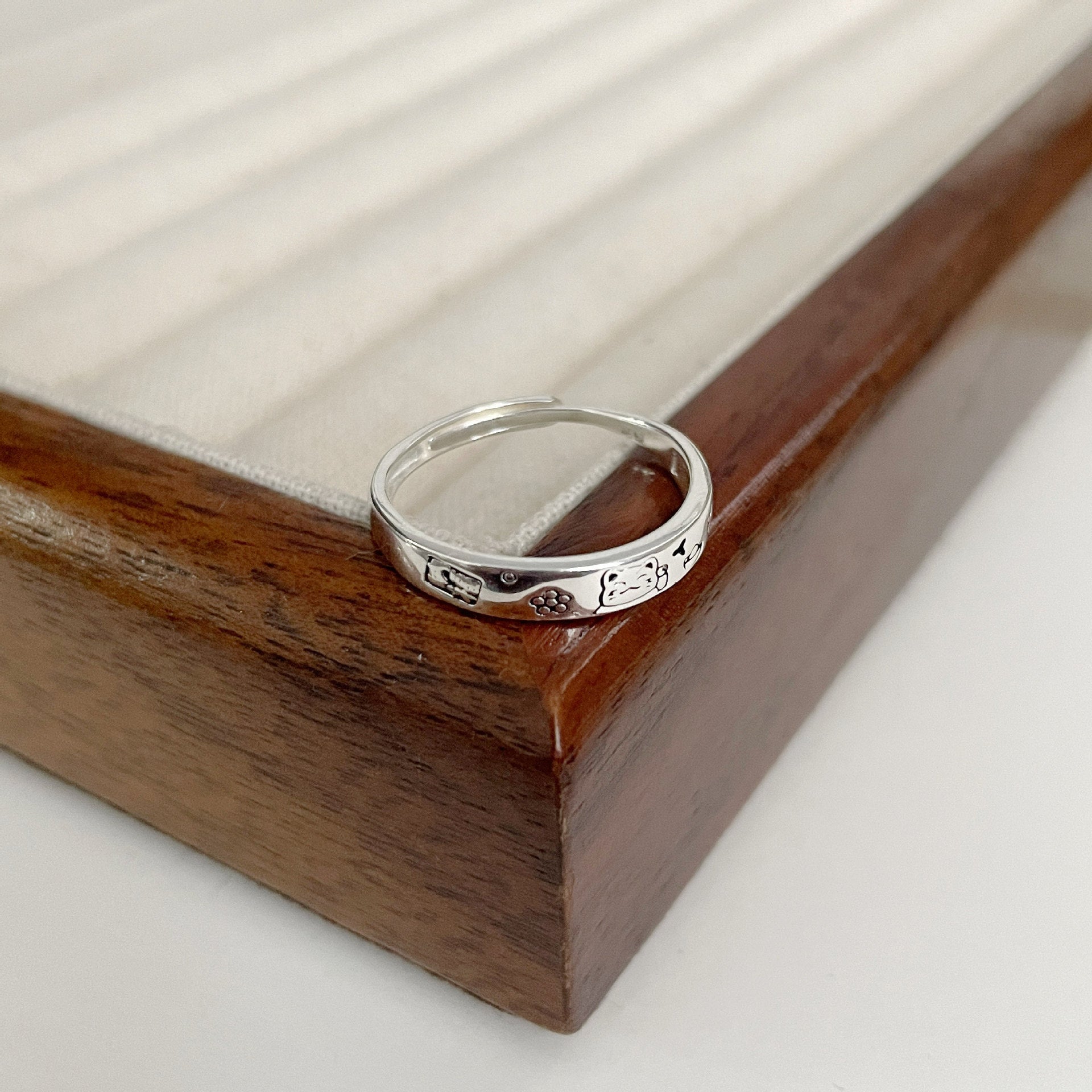 F廠【DQ8593R】999足銀新中式吉言貓咪戒指女時尚簡約納福小貓純銀推拉指環 25.04-2