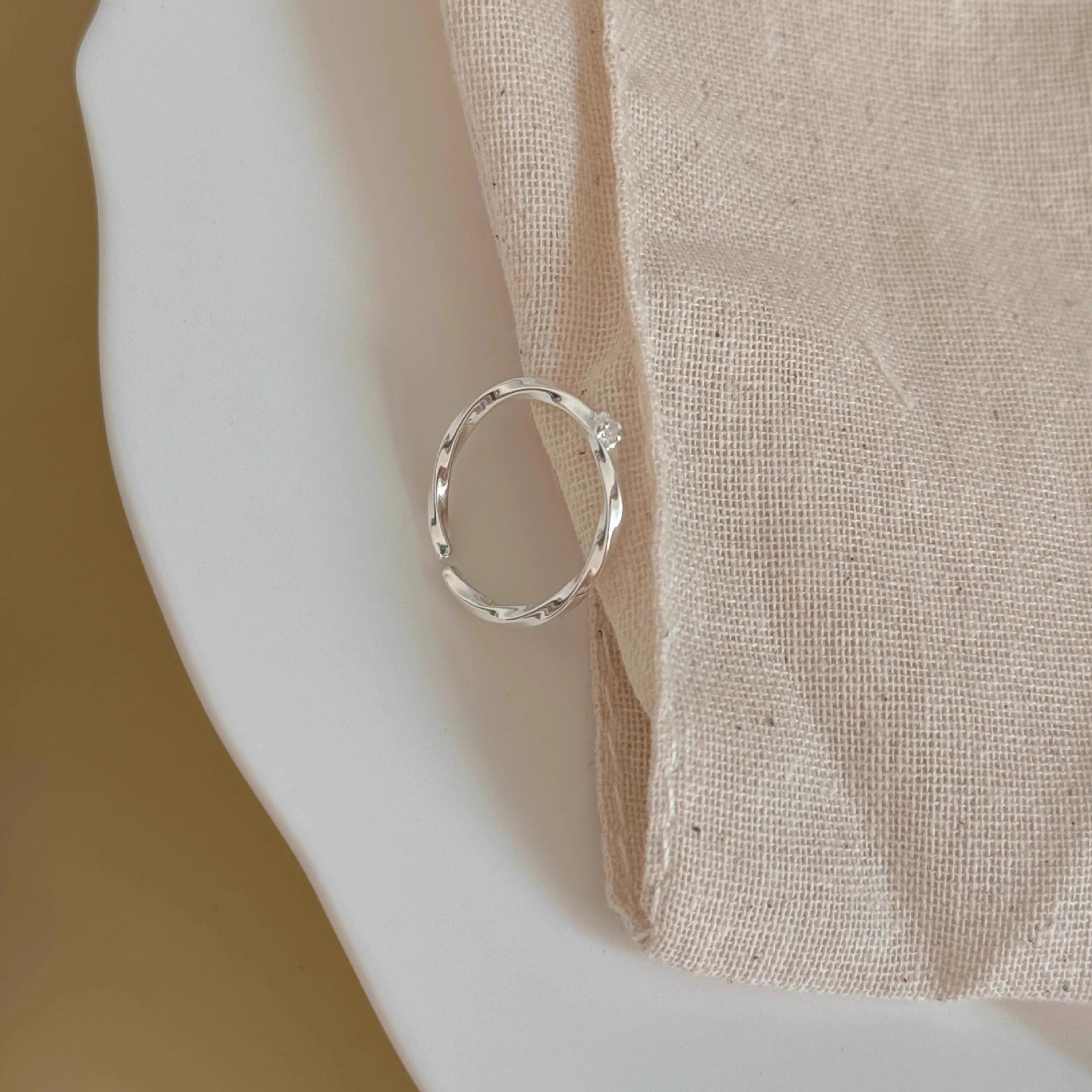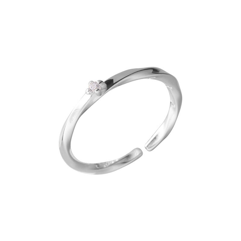 F廠【DQ8594R】S925純銀簡約韓系莫比烏斯戒指女ins風波浪單鑽細款開口尾戒 25.03-2
