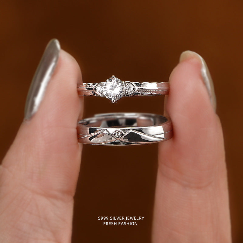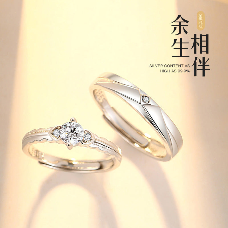 F廠【DQ8613R】原始小眾設計餘生相伴情侶戒指一對足銀999韓版簡約開口指環 25.01-1