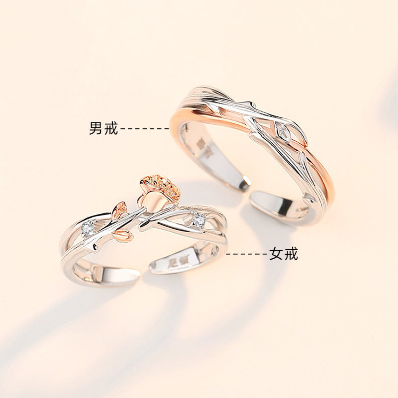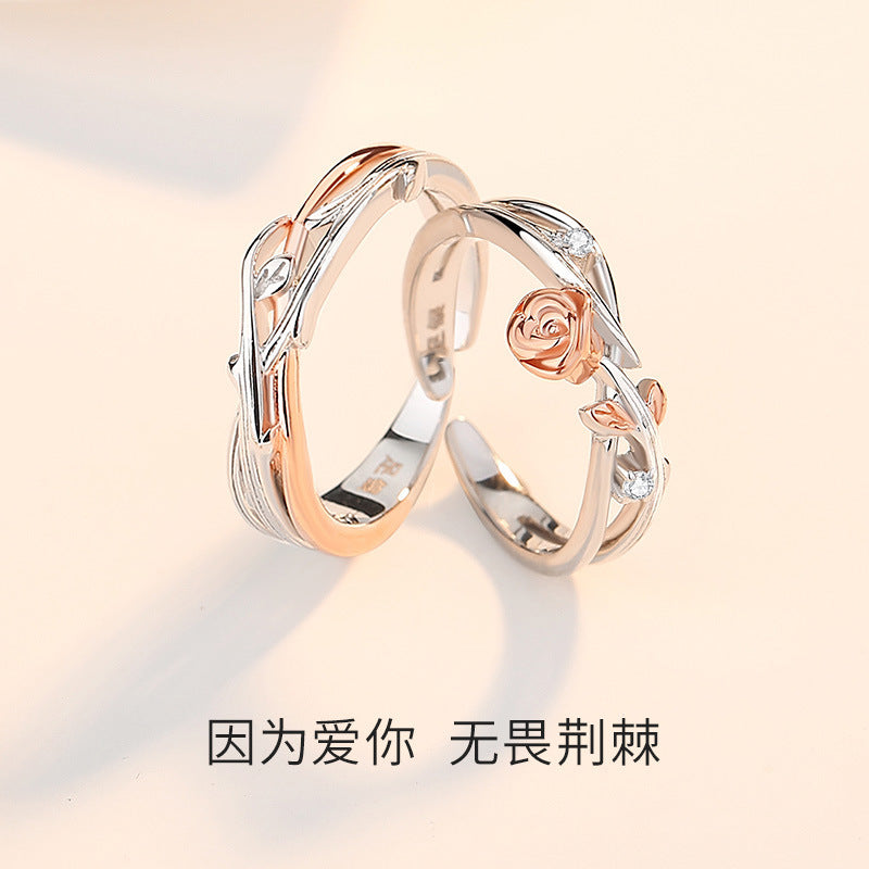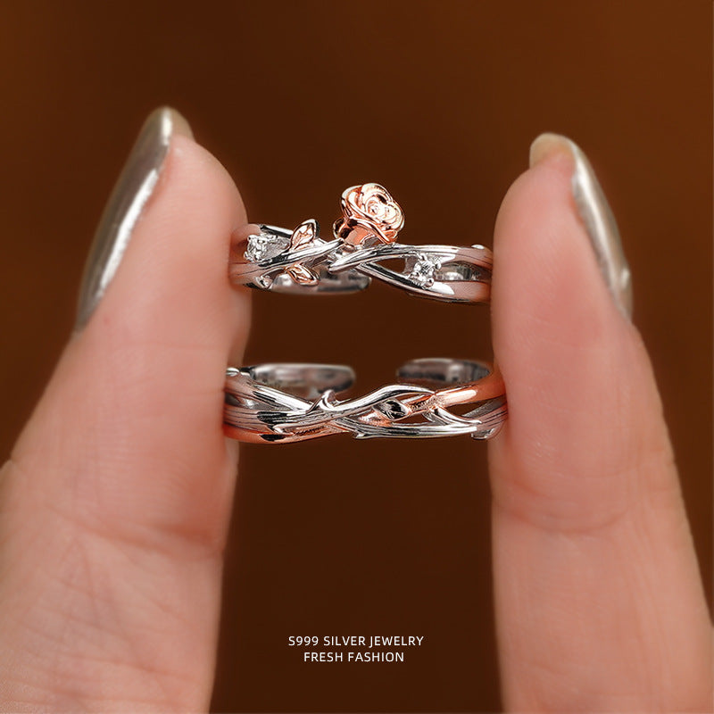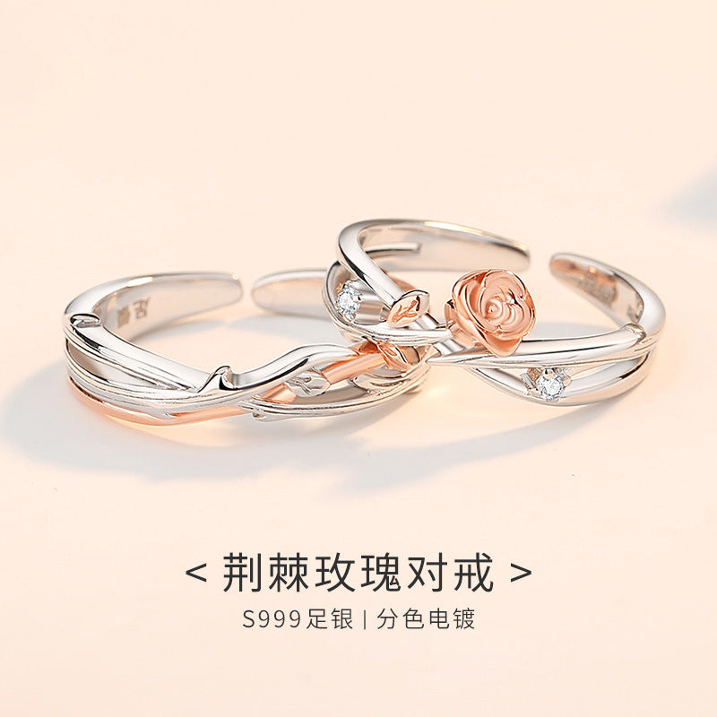 F廠【DQ8679R】原創足銀999荊棘玫瑰情侶戒指一對小眾設計高級感ins開口戒 25.01-1