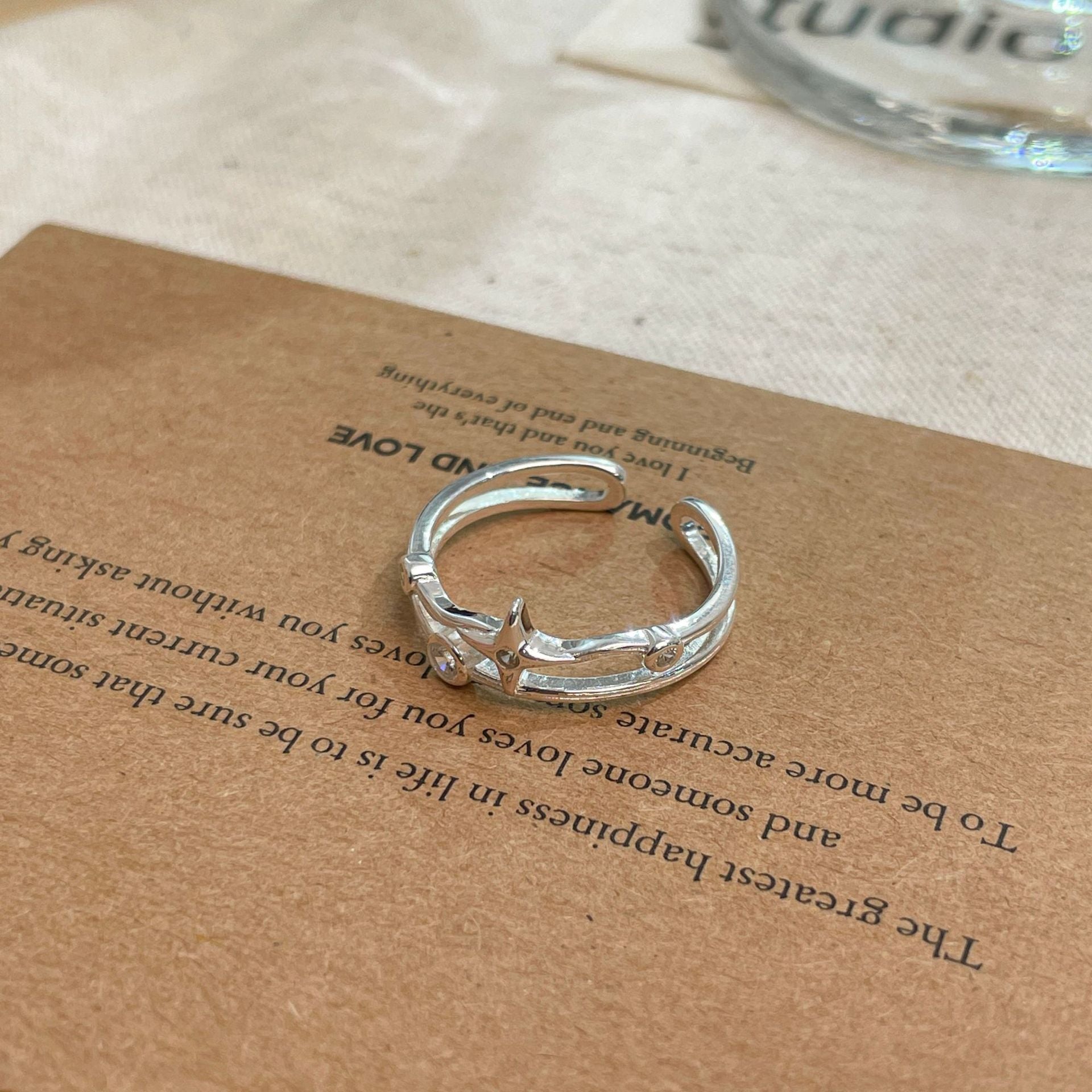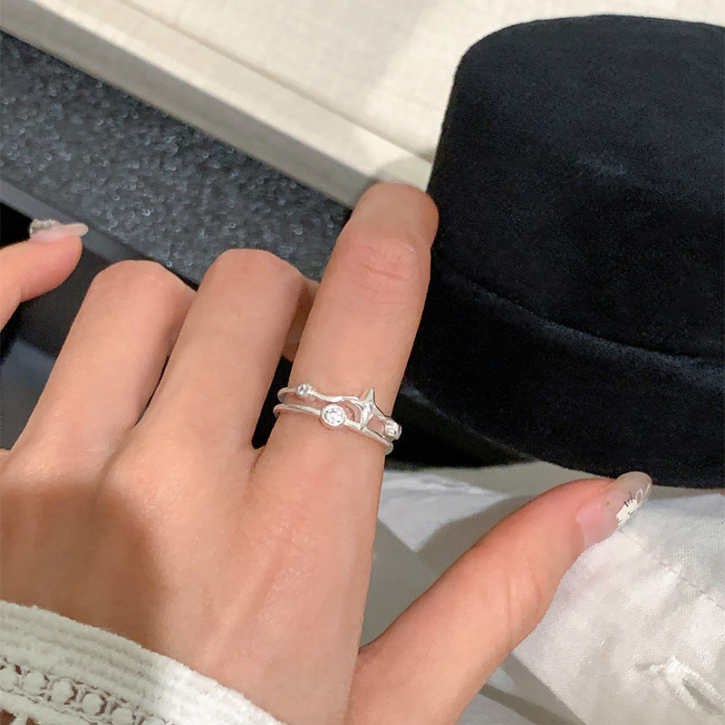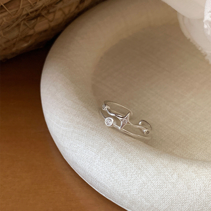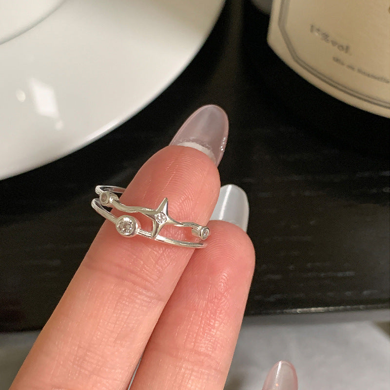 F廠【DQ8811R】S925銀四芒星戒指女小眾設計星星雙層指環時尚個性開口食指戒 25.10-1