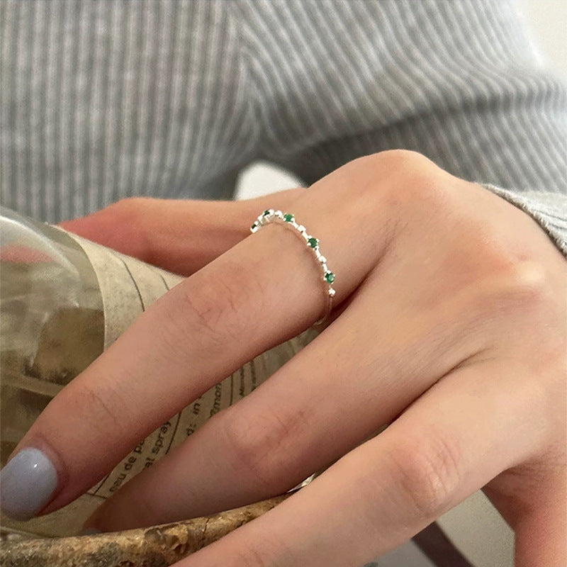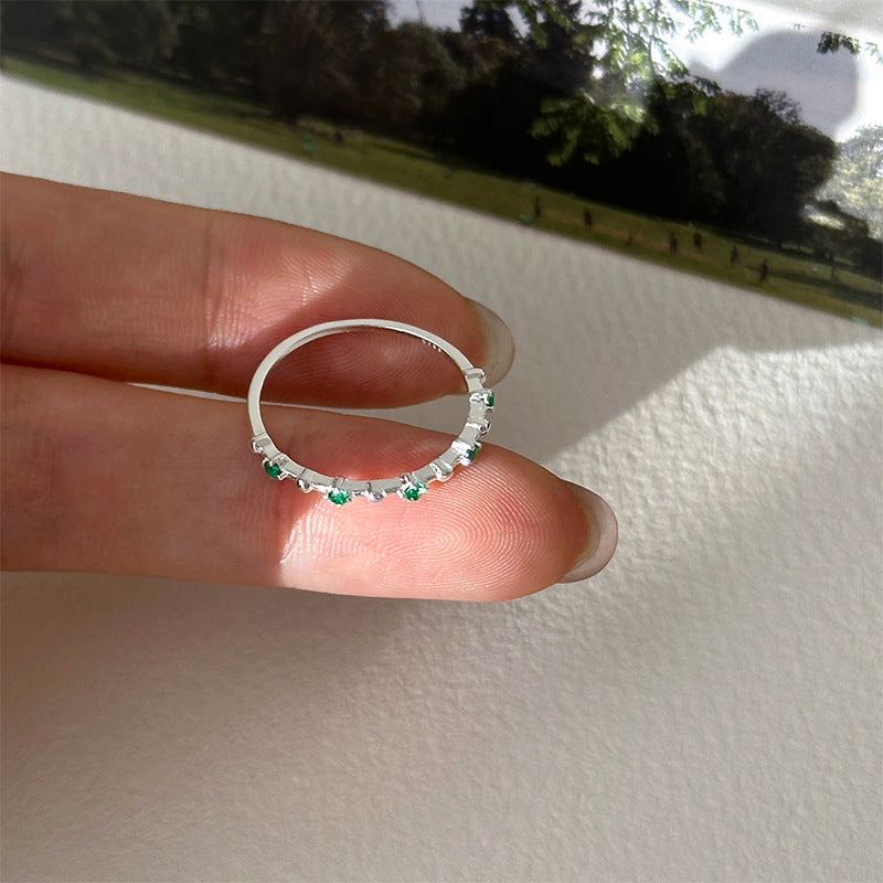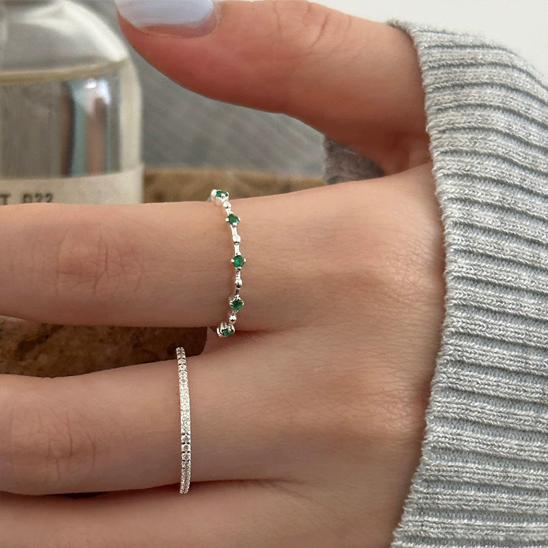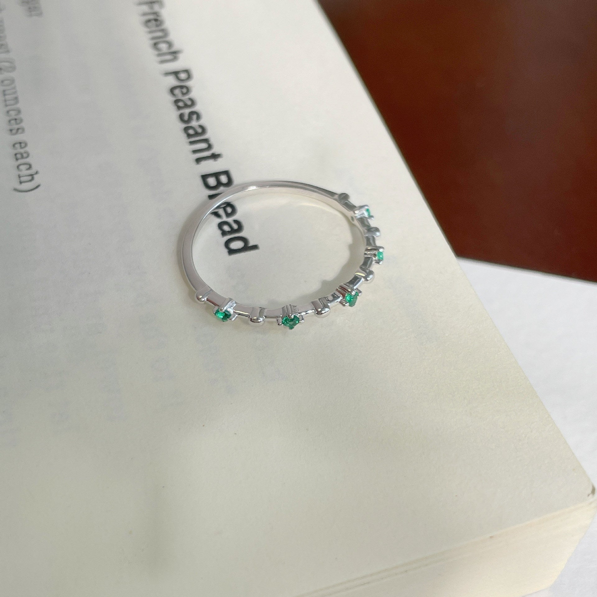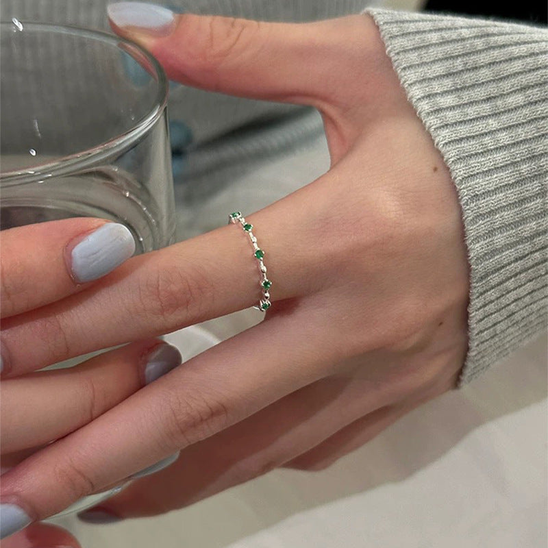 F廠【DQ8816R】S925純銀小清新祖母綠排鑽戒指女時尚個性閃鋯纖細閉口指環潮 25.03-3