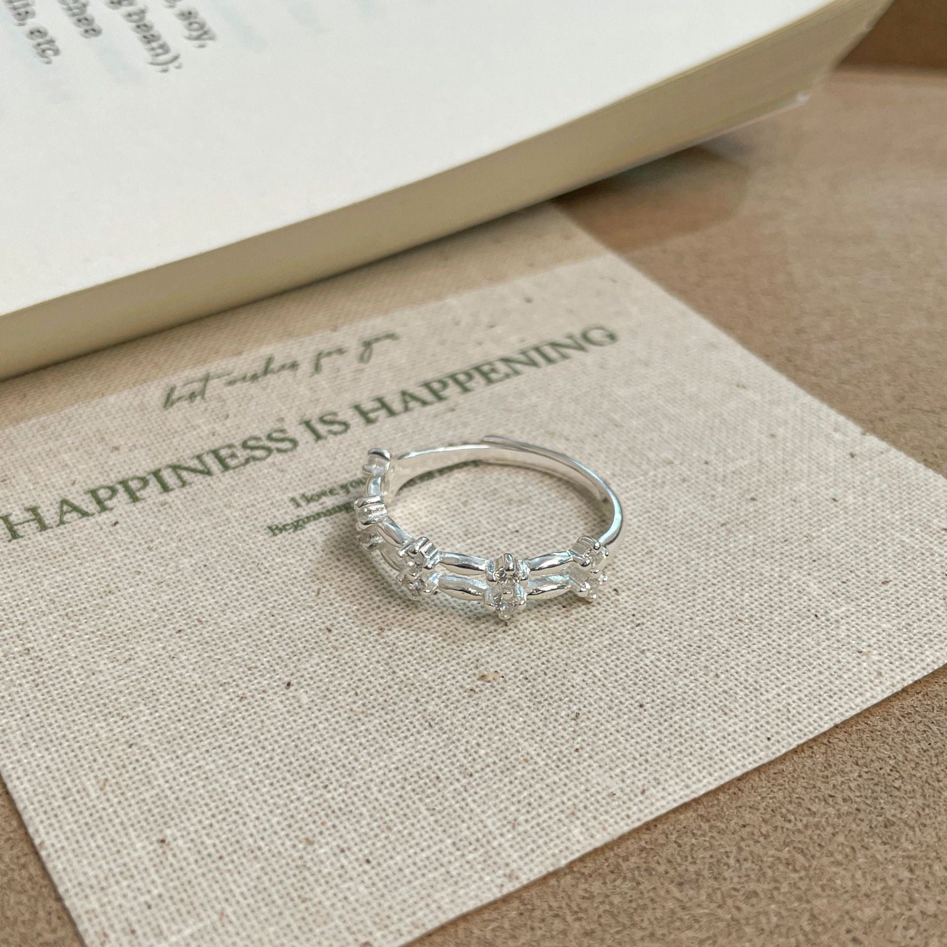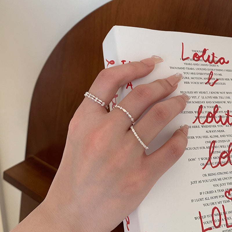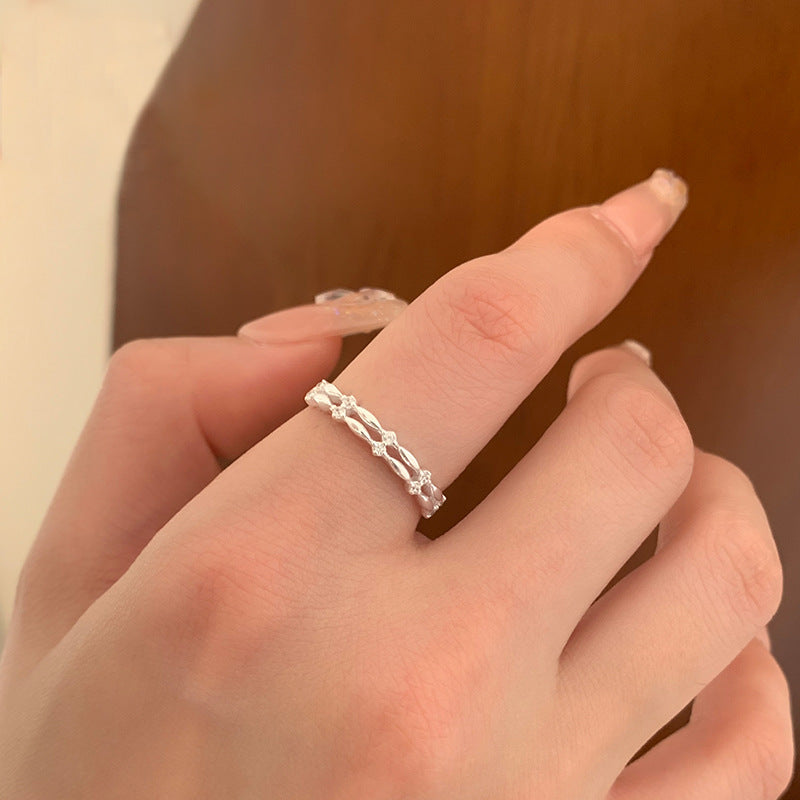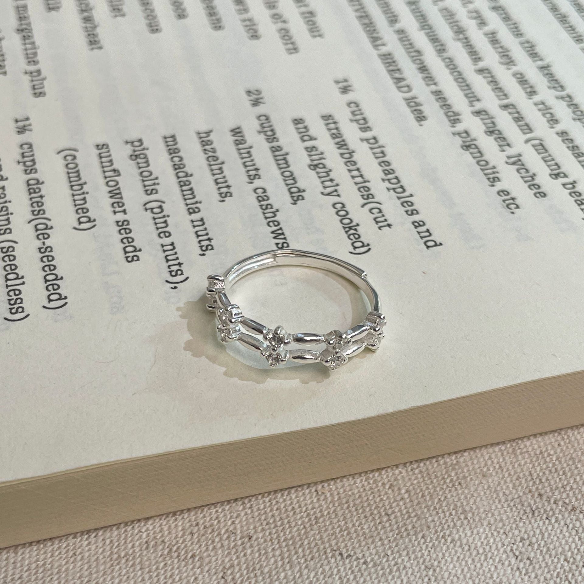 F廠【DQ8848R】S999純銀時尚輕奢雙層鋯石戒指女溫柔高級感疊戴開口食指戒潮 25.10-1