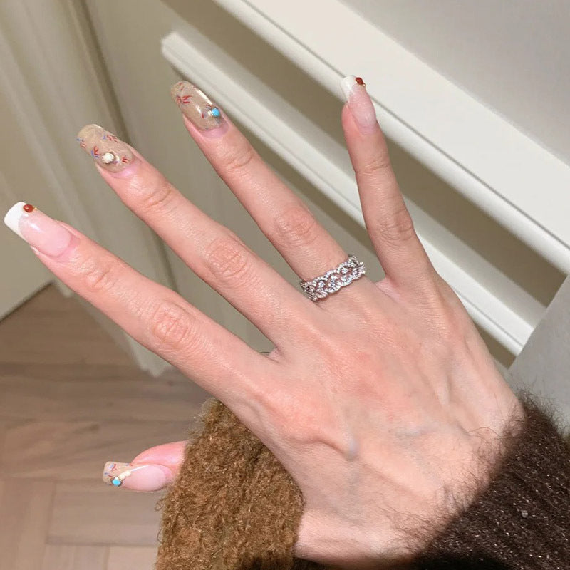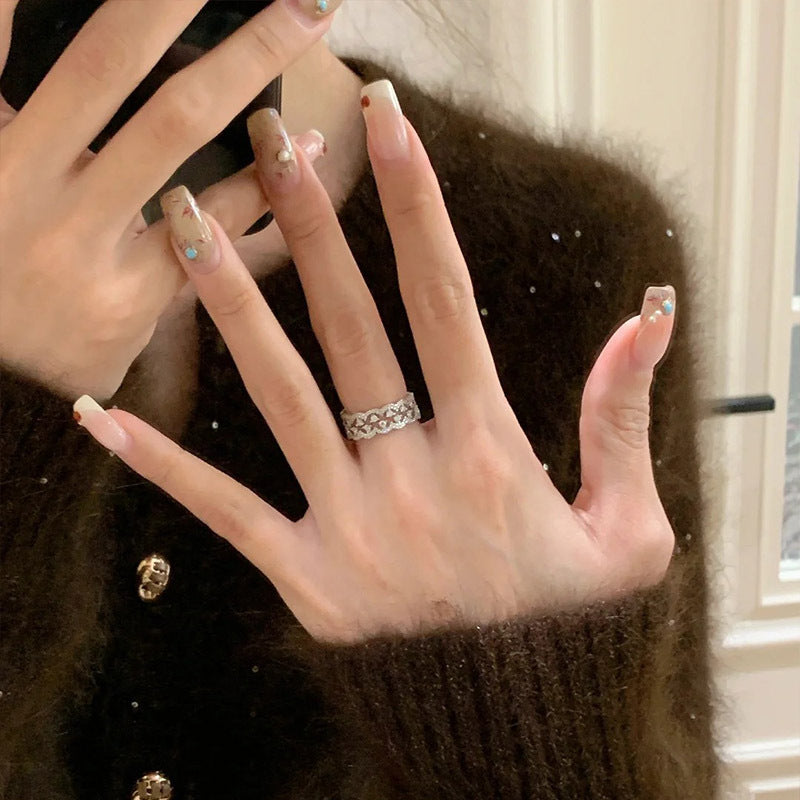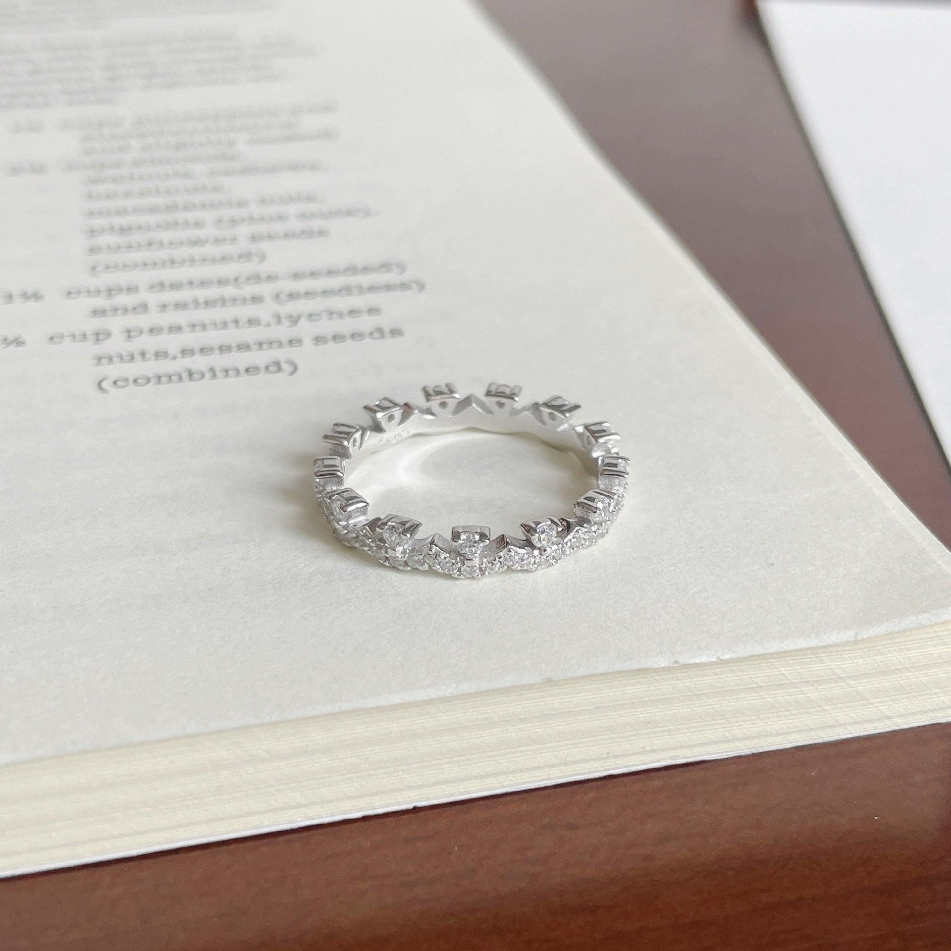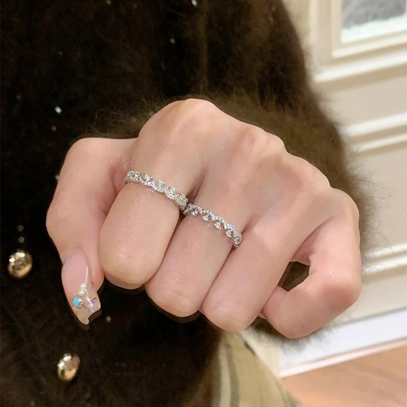 F廠【DQ8934R】S925純銀精緻滿鑲蕾絲排鑽戒指女精緻高級感ins簡約疊戴指環 25.04-2