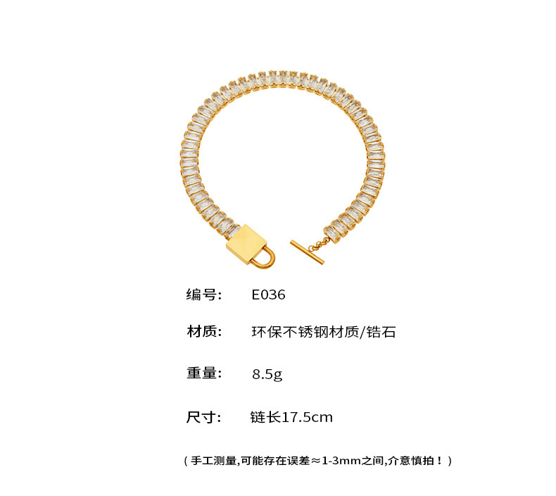B廠【E036】歐美高級感時尚鑲嵌鋯石鏈手鍊個性鎖頭卡扣設計手飾不銹鋼鍍金 26.02-1