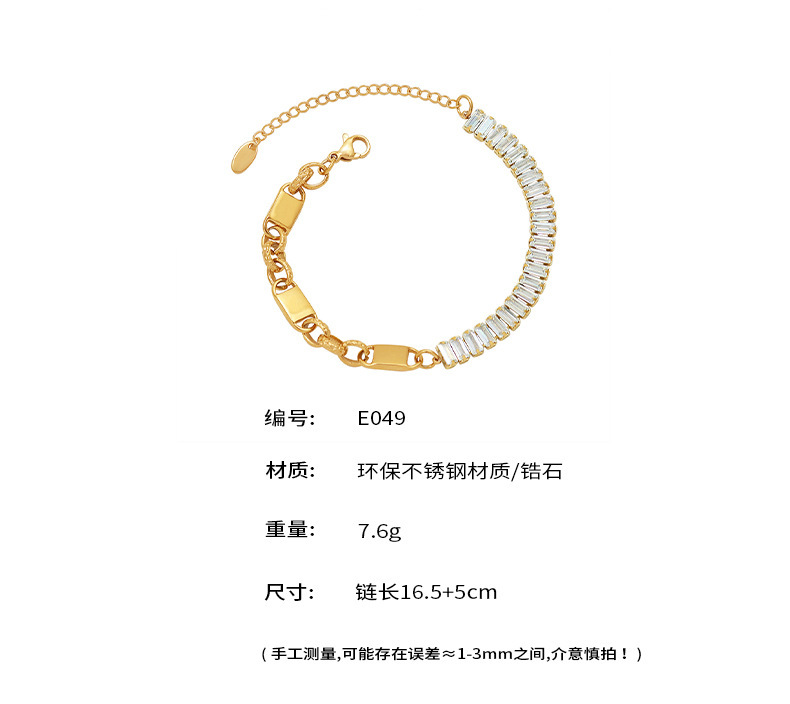 B廠【E049】歐美ins簡約設計感5A鋯石拼接鏈條時尚手鍊不鏽鋼鍍18k金跨境手飾 26.02-1