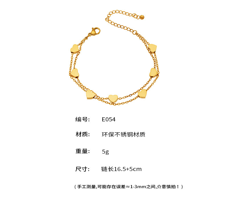 B廠【E054】歐美ins風小清新愛心雙層疊戴手鍊跨國時尚簡約飾品不鏽鋼鍍18k金 26.02-1