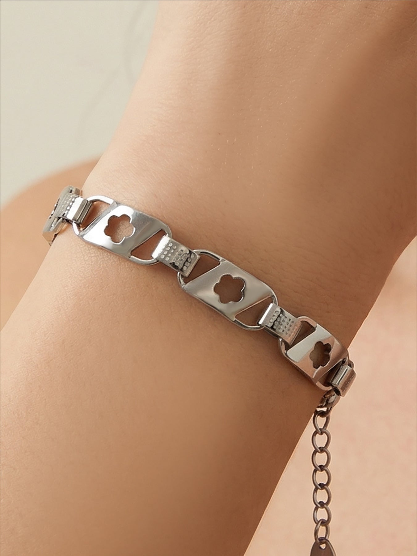 B廠【E079】ins時尚潮流網紅同款鏤空花型手鍊 情侶小眾設計感個性百搭手飾 26.02-1