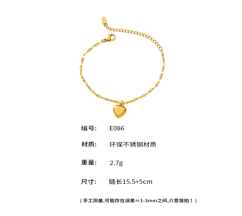 B廠【E086】歐美新款不鏽鋼愛心手鍊 chic心型女INS網紅個性輕奢百搭手鍊 26.02-1