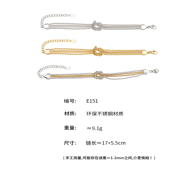 B廠【E151】不鏽鋼打結鍊手鍊個性間電鍍18k真金INS小眾設計時尚百搭歐美手飾 25.12-3