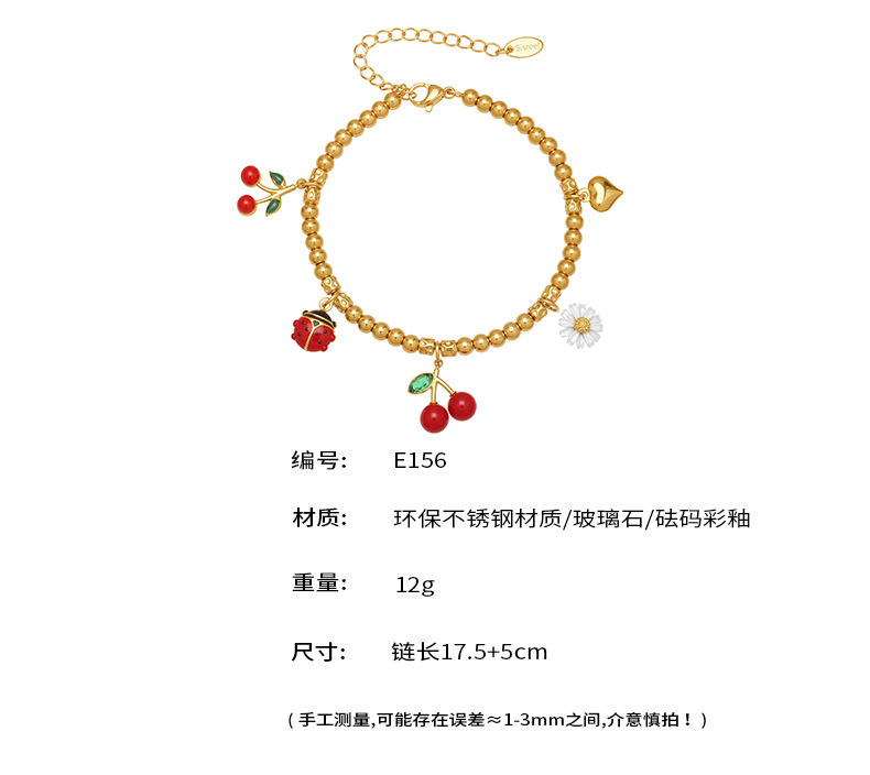 B廠【E156】不鏽鋼櫻桃法國小雛菊滴油多配件吊墜手鍊雙色間電鍍18k真金飾品 25.12-3