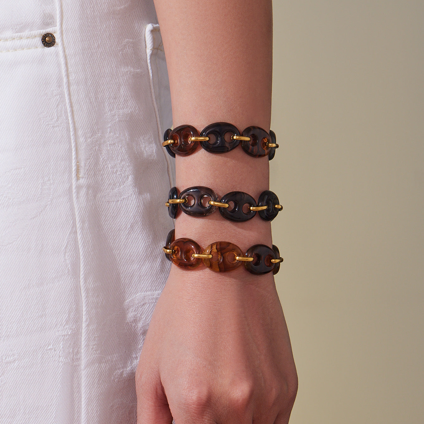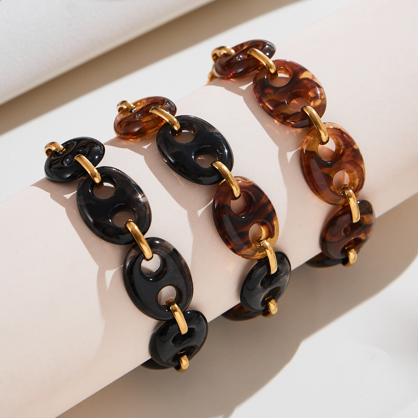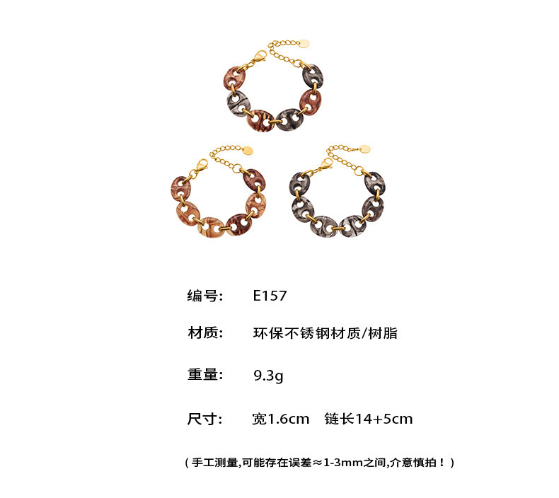B廠【E157】不鏽鋼樹脂豬鼻子手鍊鍍18k金琥珀色百搭歐美輕奢鍊飾首飾 25.10-3