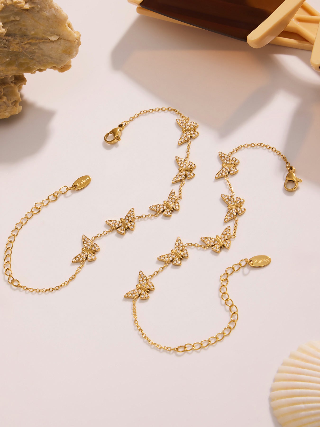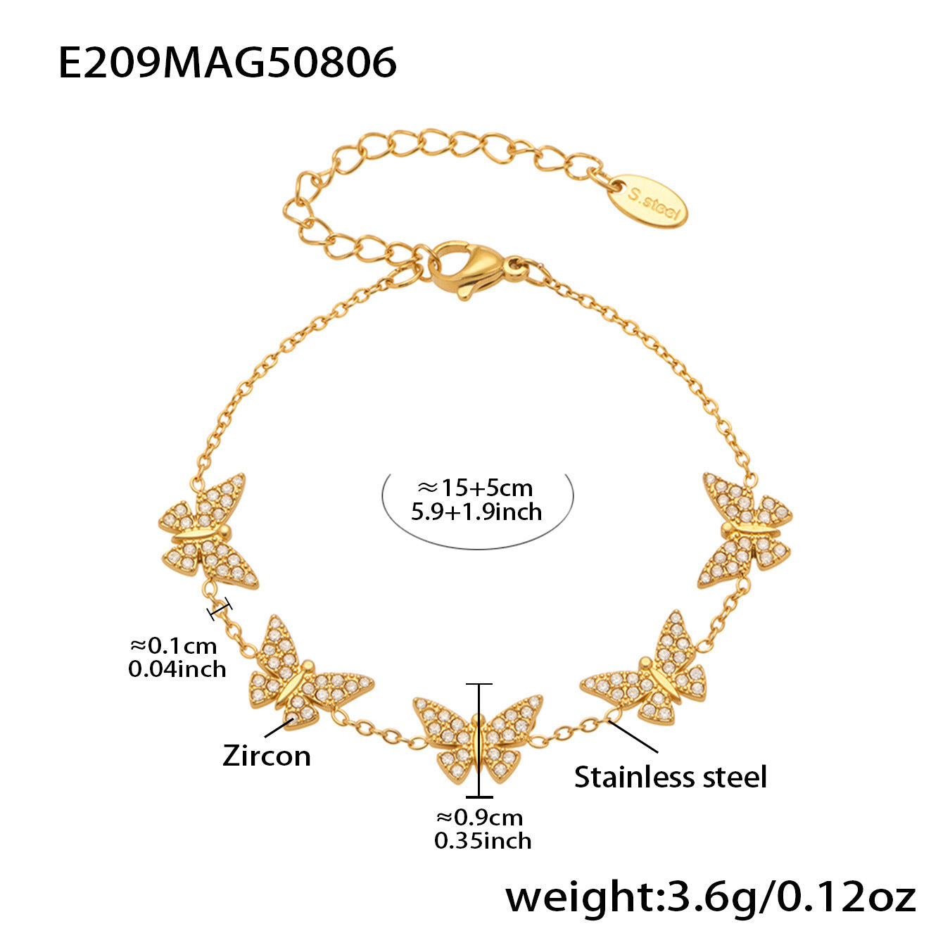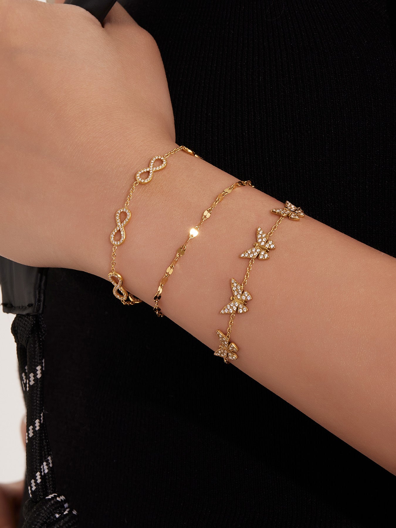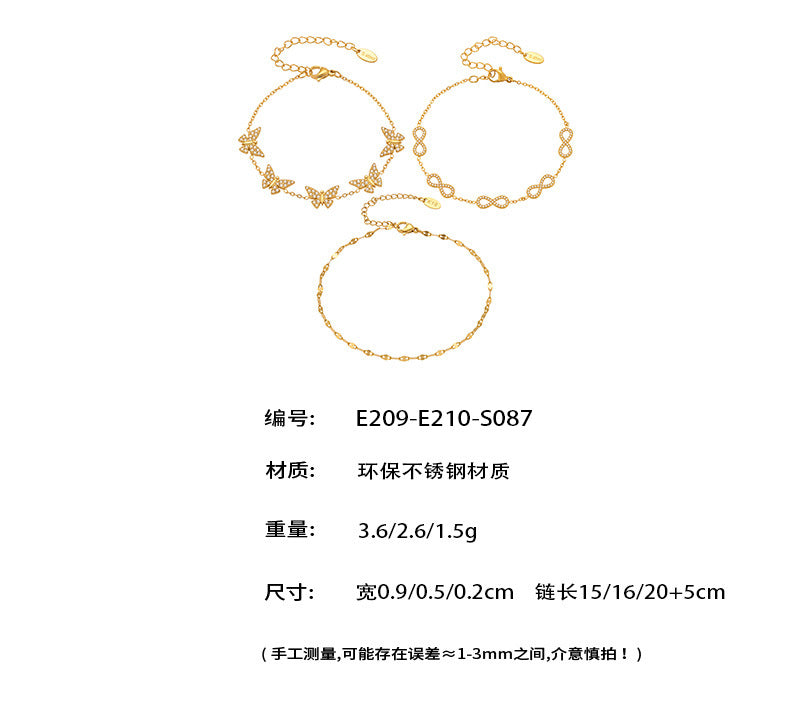 B廠【E209】INS風簡約手鍊不鏽鋼蝴蝶鑲鋯石飾品跨境新款手飾鍍18k真金 25.08-3
