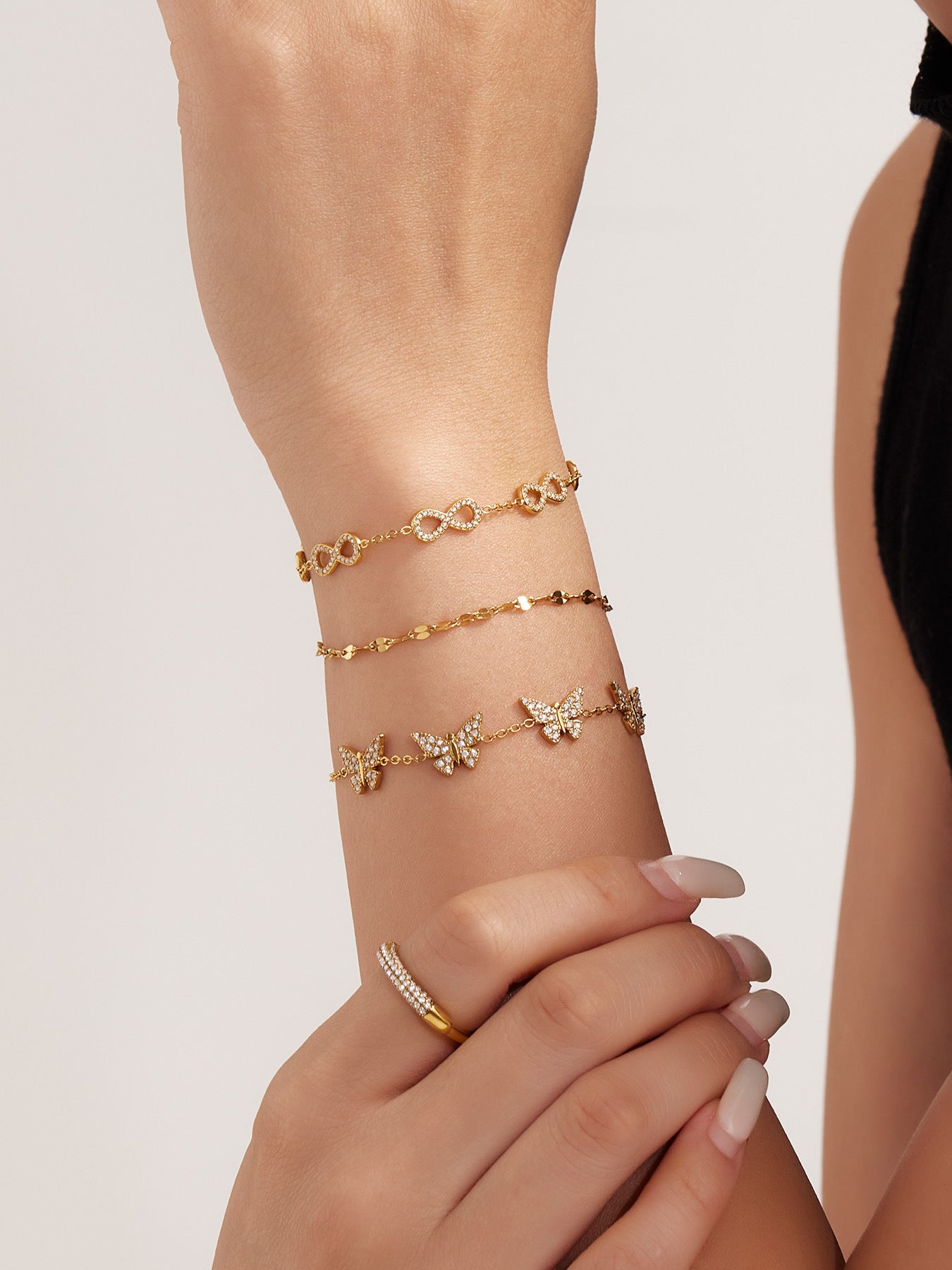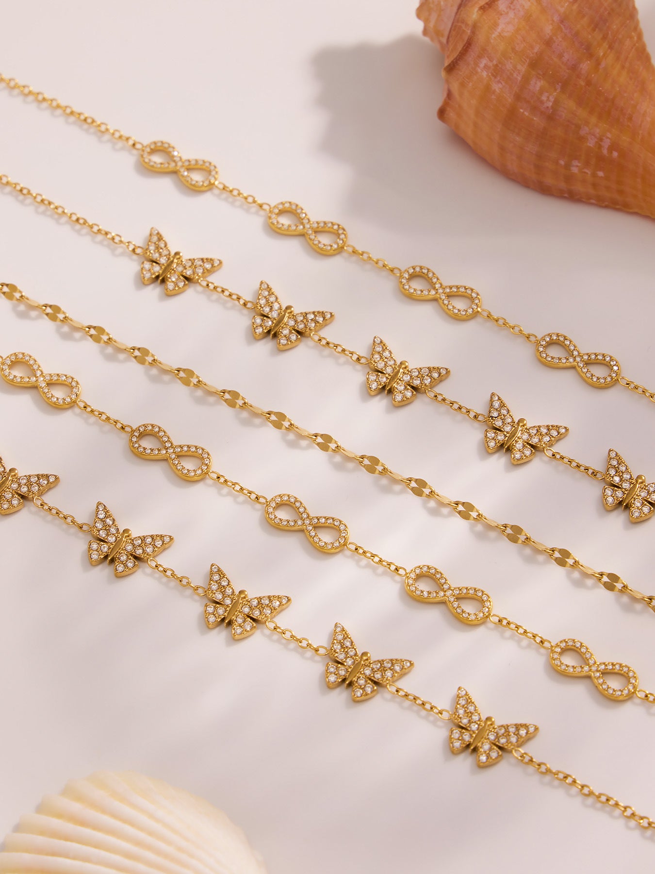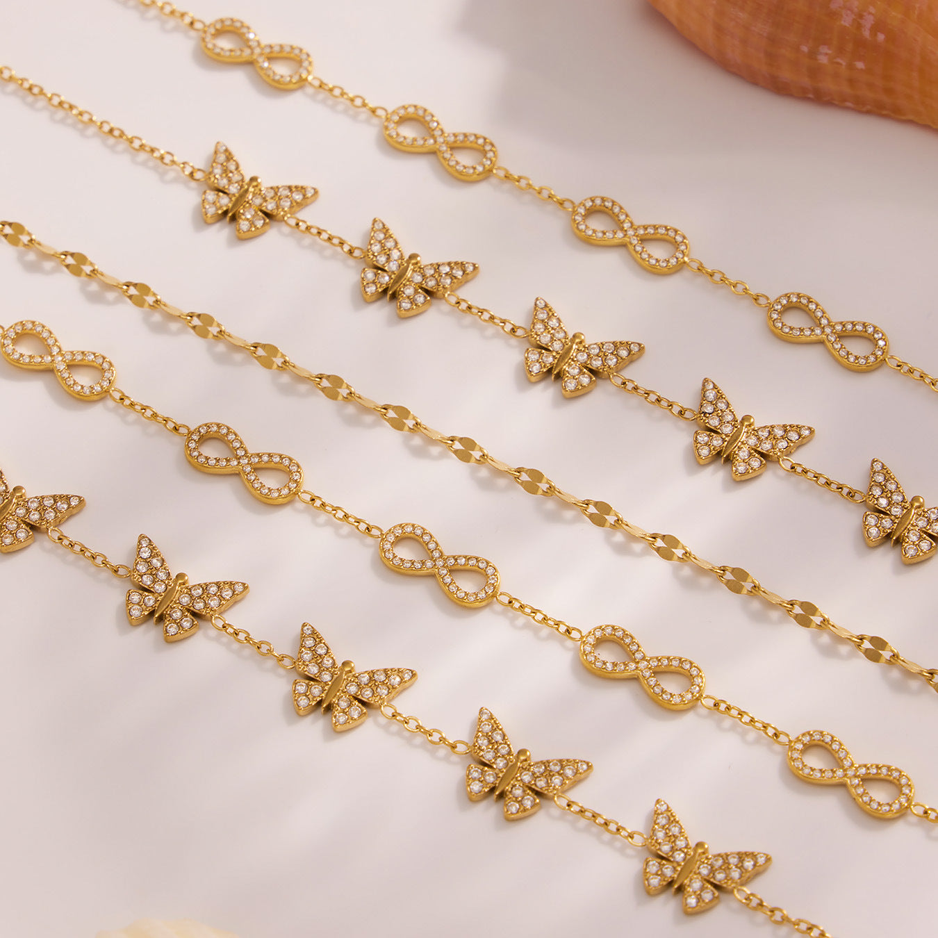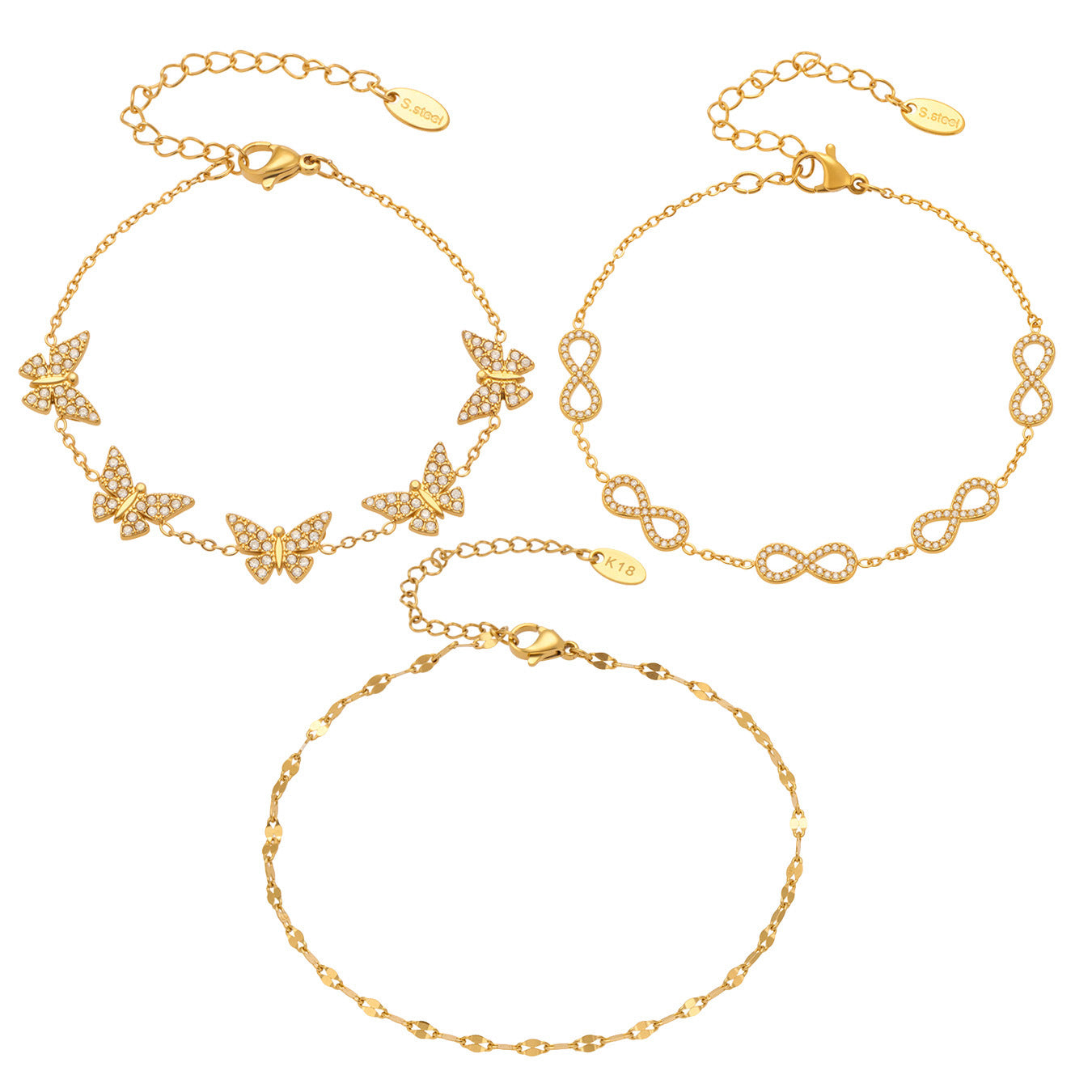 B廠【E209】INS風簡約手鍊不鏽鋼蝴蝶鑲鋯石飾品跨境新款手飾鍍18k真金 25.08-3