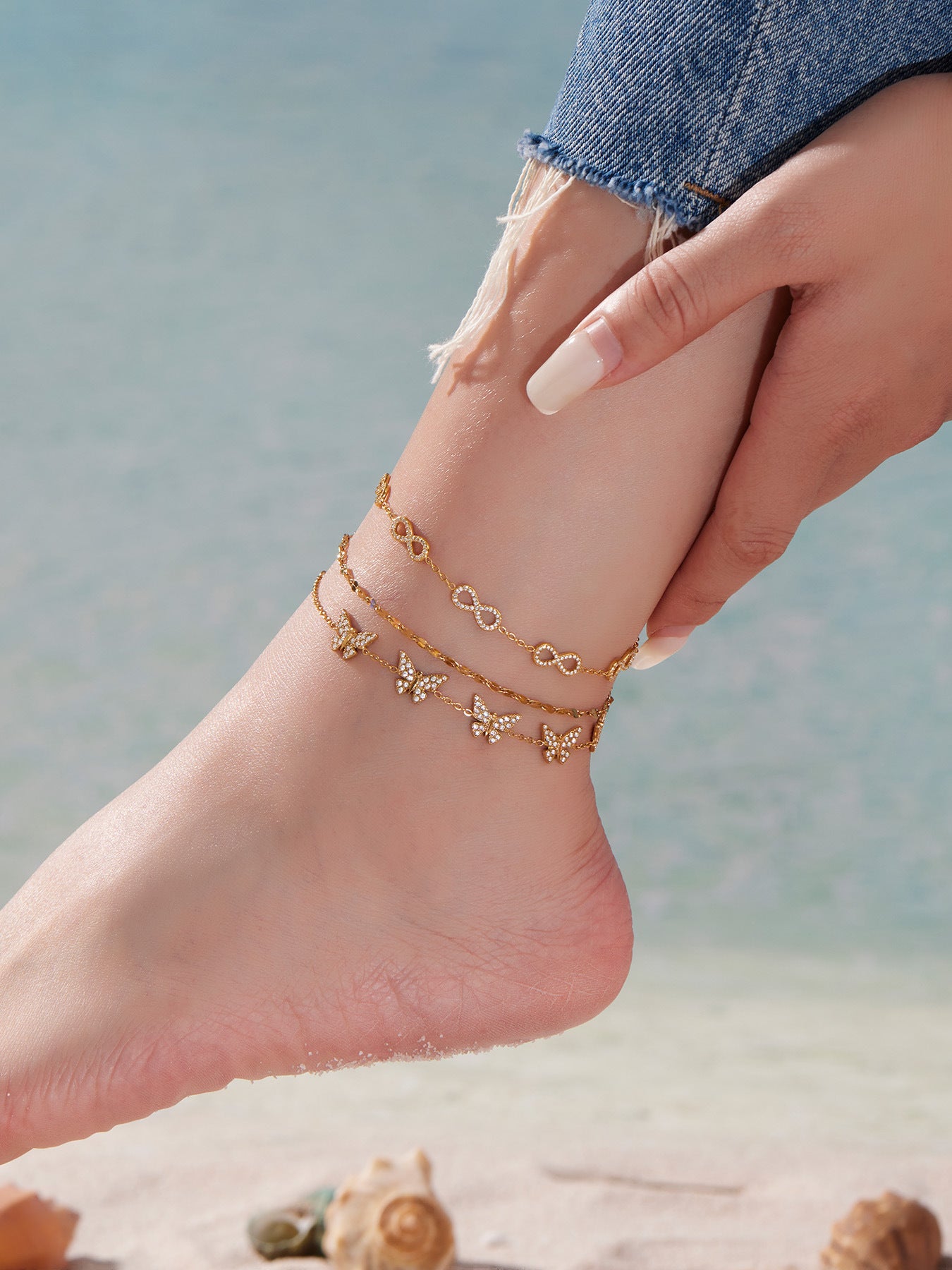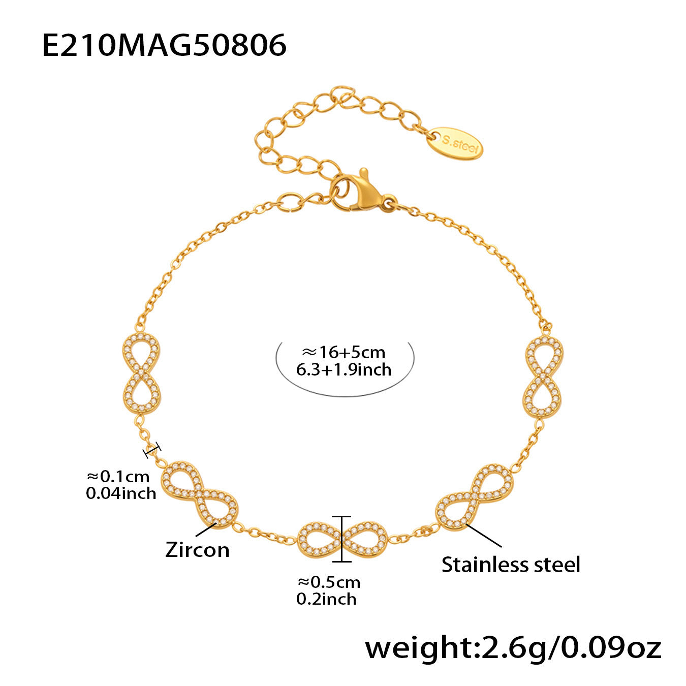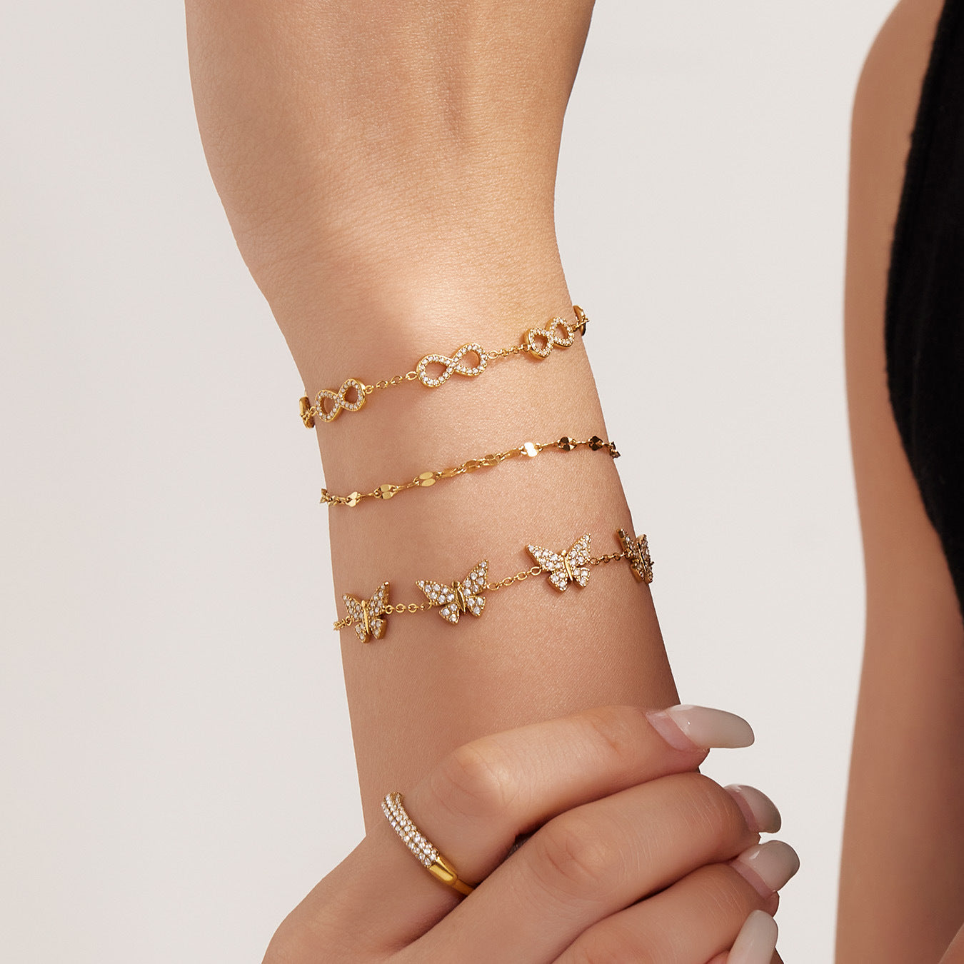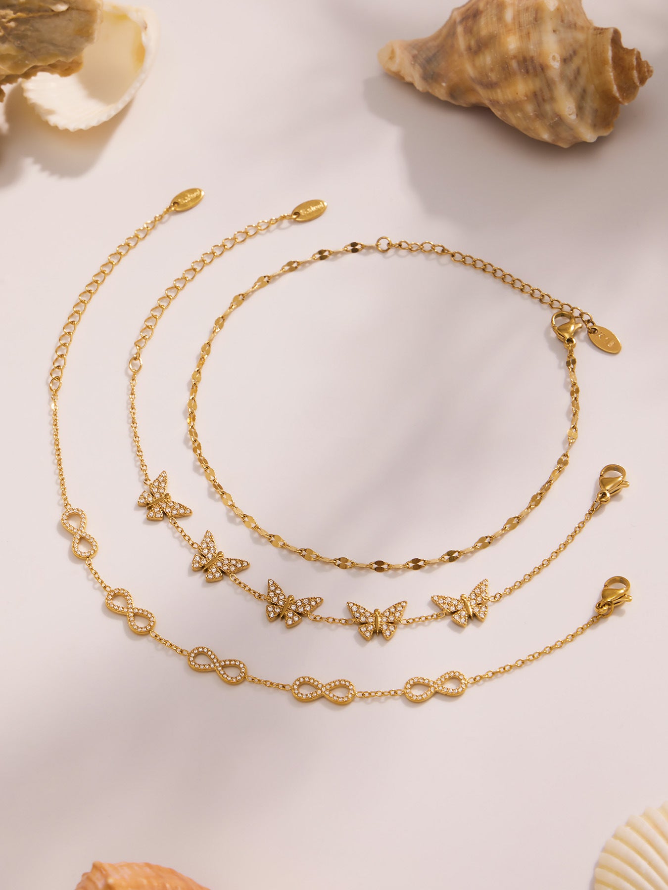 B廠【E209】INS風簡約手鍊不鏽鋼蝴蝶鑲鋯石飾品跨境新款手飾鍍18k真金 25.08-3