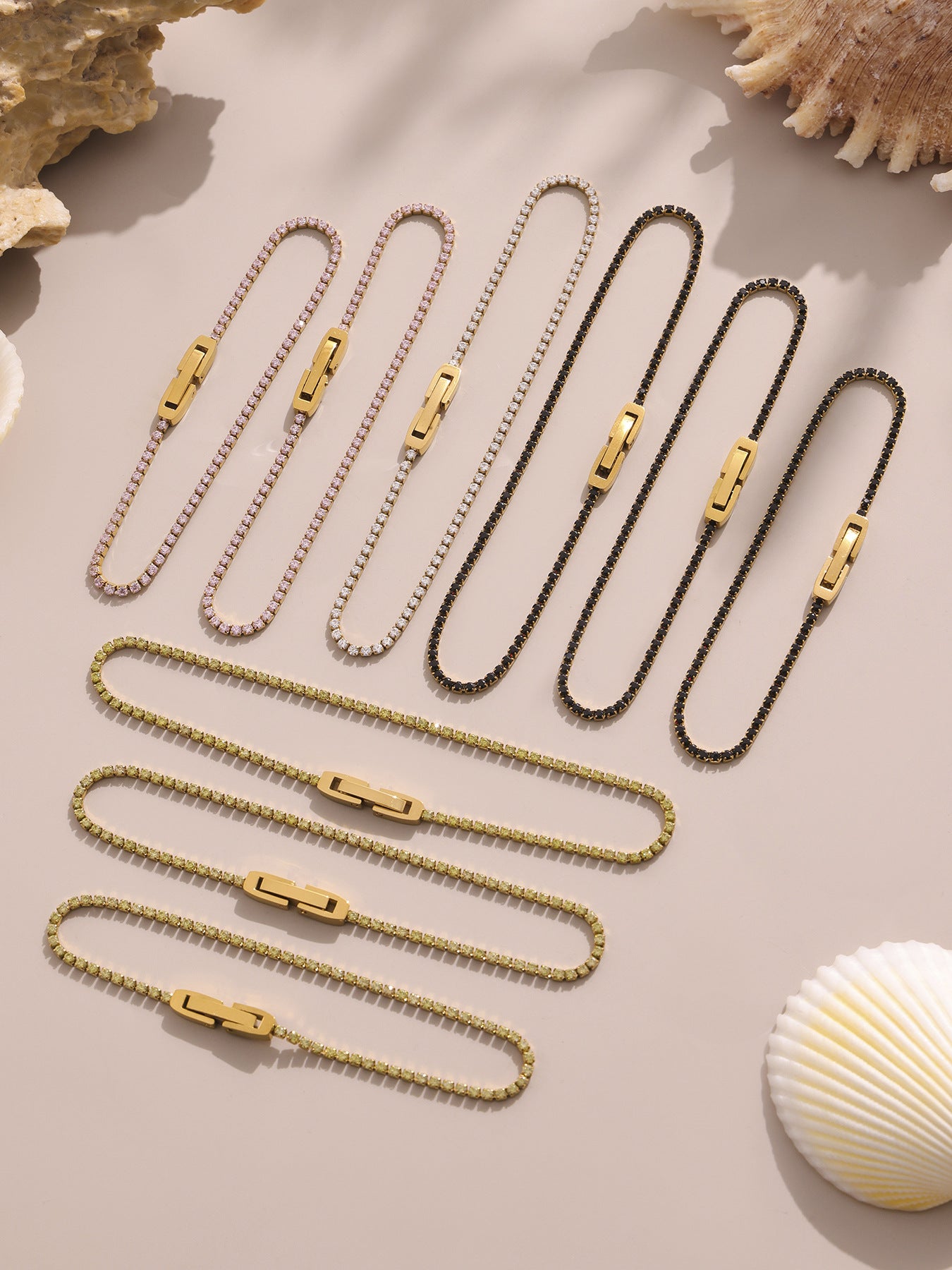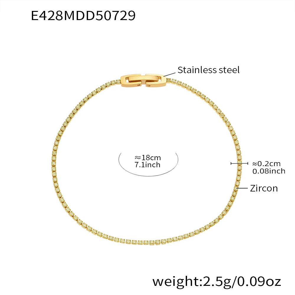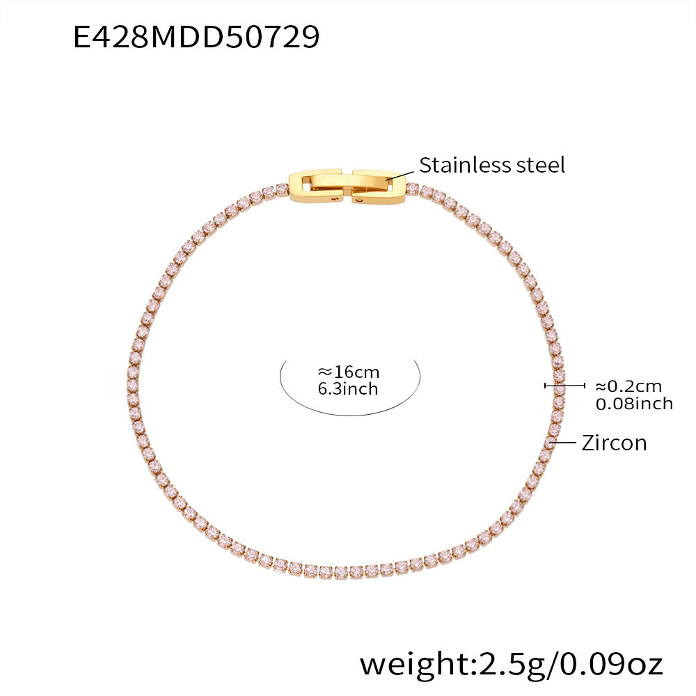 B廠【E428】5A超閃鋯石不鏽鋼手鍊18k鍍真金ins風小眾輕奢設計精緻首飾 25.08-2