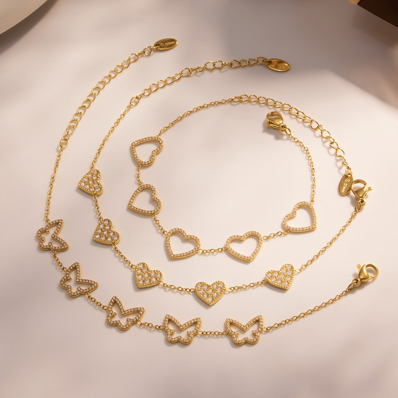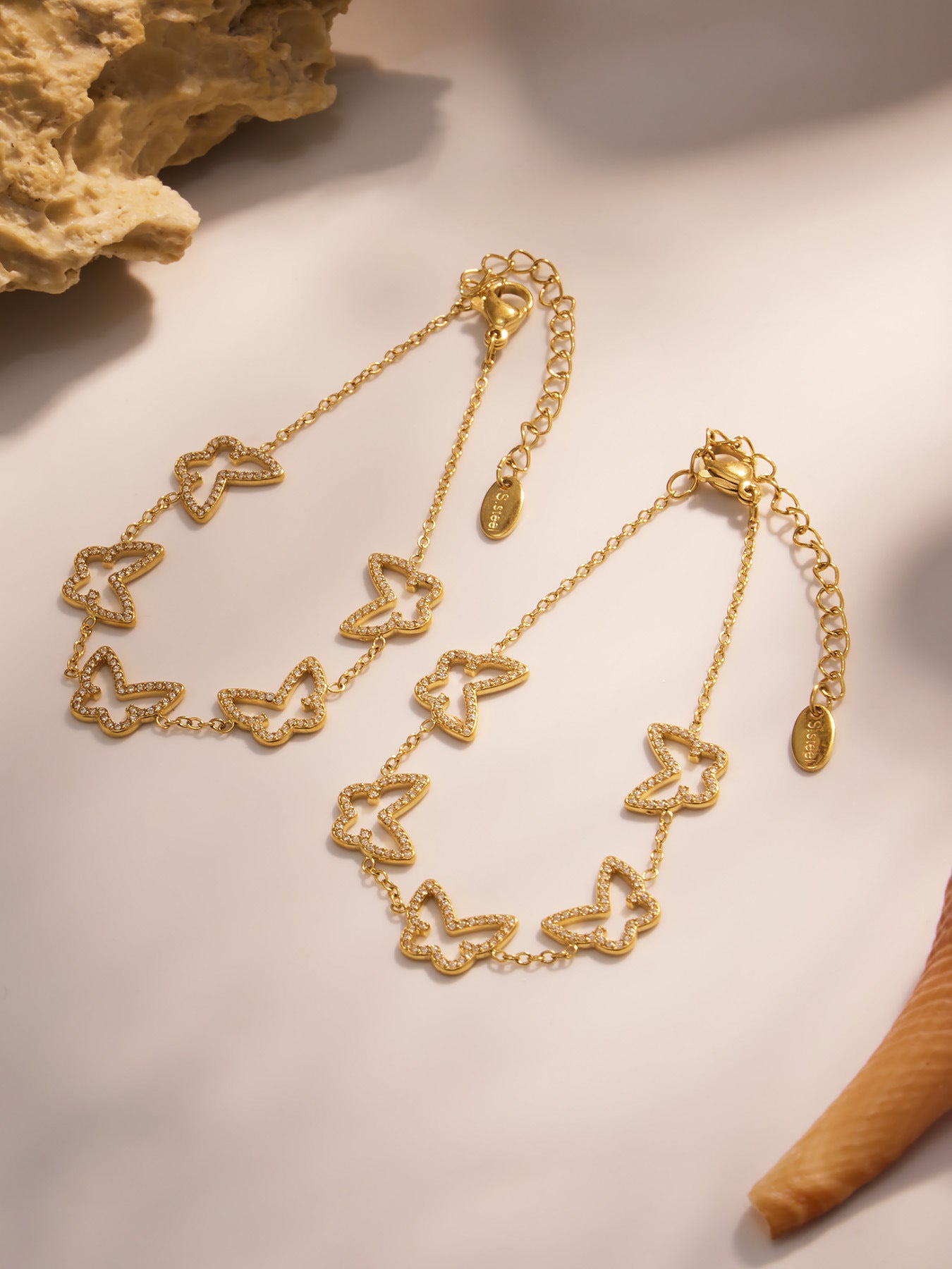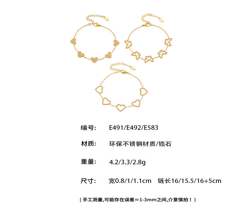 B廠【E491】歐美新款飾品不鏽鋼幾何蝴蝶造型鑲嵌鋯石手鍊鍍18k金飾品 25.08-3