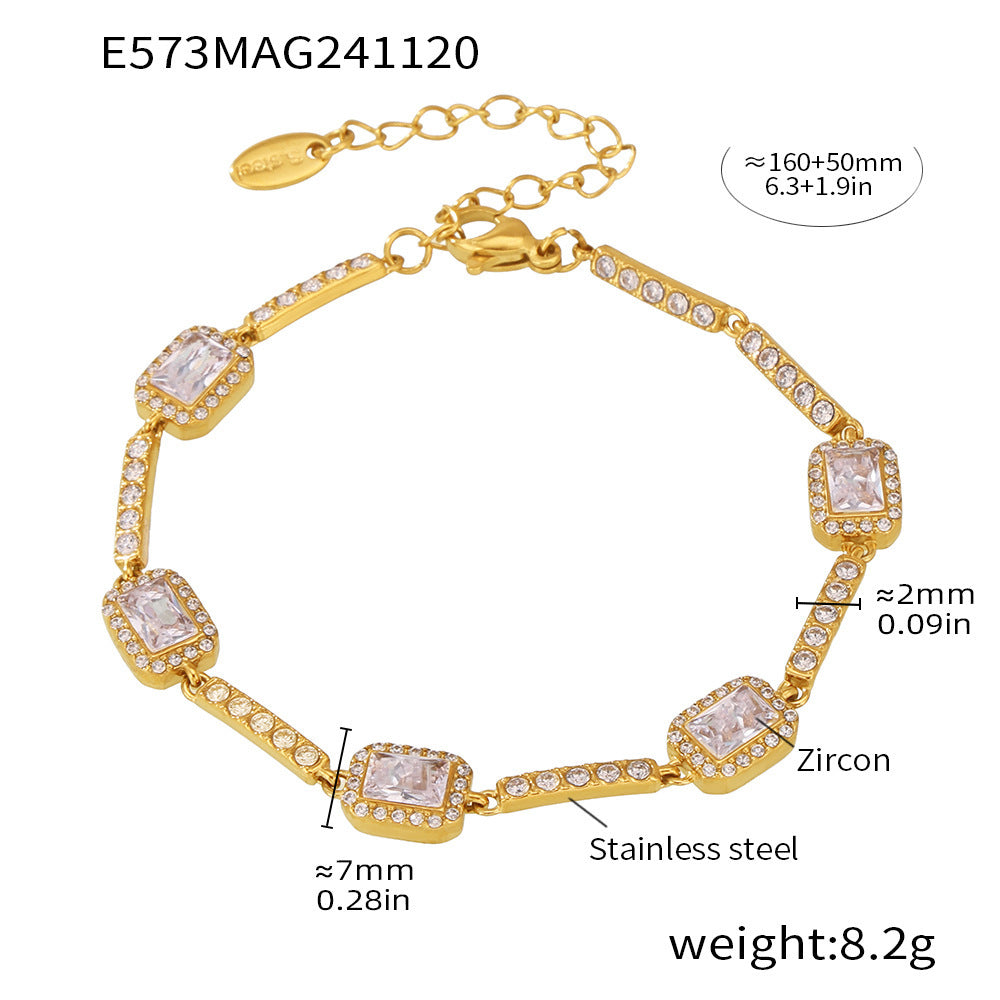 B廠【E573】不鏽鋼長條方塊手工鑲嵌超閃鋯石高版手鍊不褪色鍍真金飾品 24.11-5