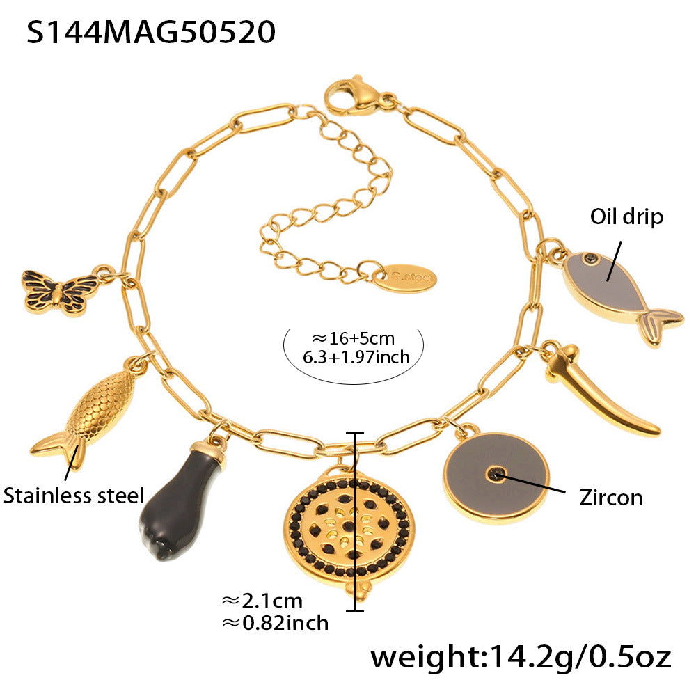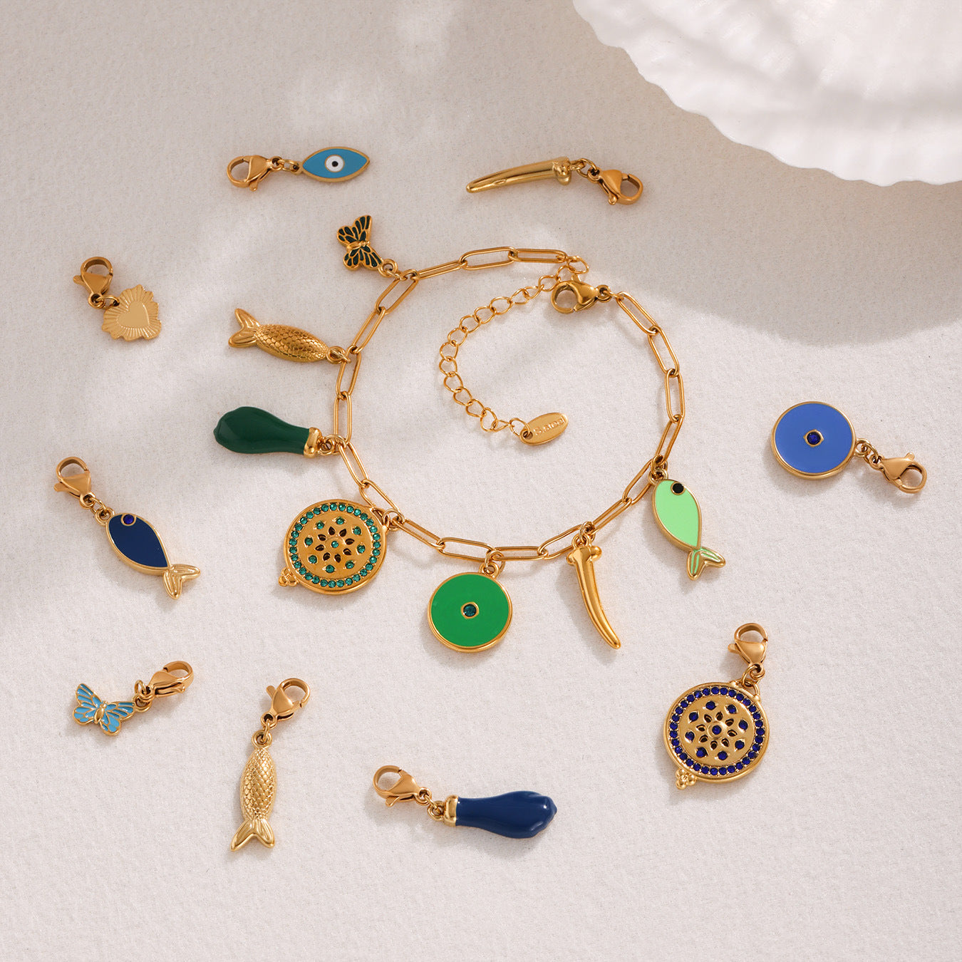 B廠【E619】歐美INS風砝碼彩釉DIY多配件吊墜手鍊不鏽鋼鍍18k真金手飾 25.05-5