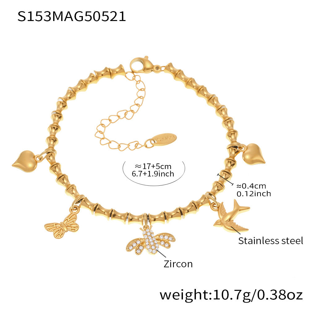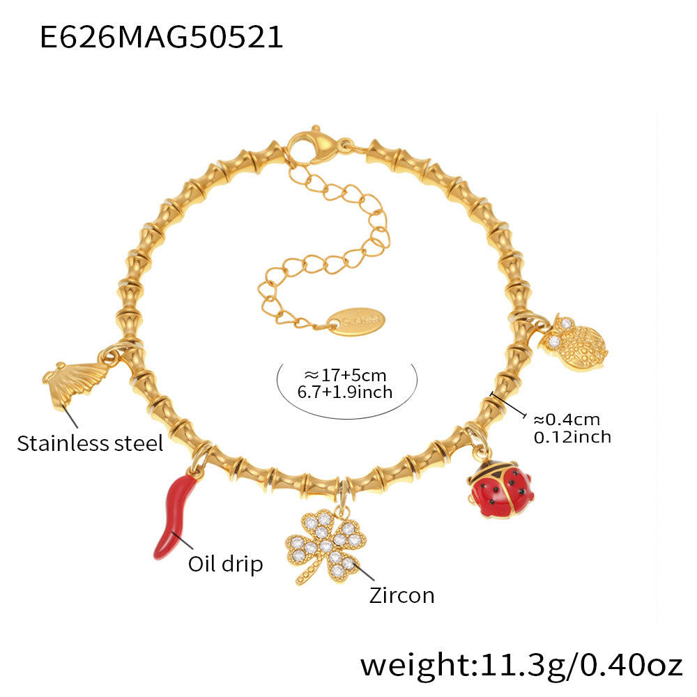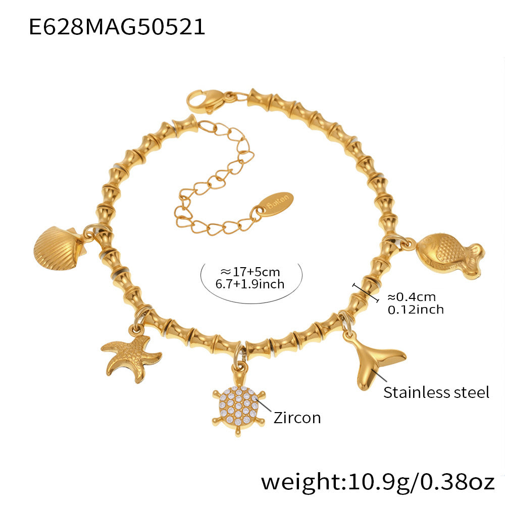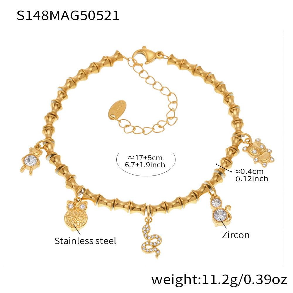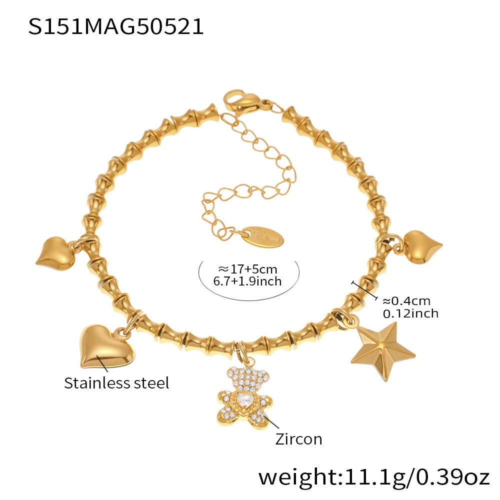 B廠【E622】歐美INS風不鏽鋼5A鋯石幾何多配件DIY手鍊組合款鍍18k真金 25.05-5