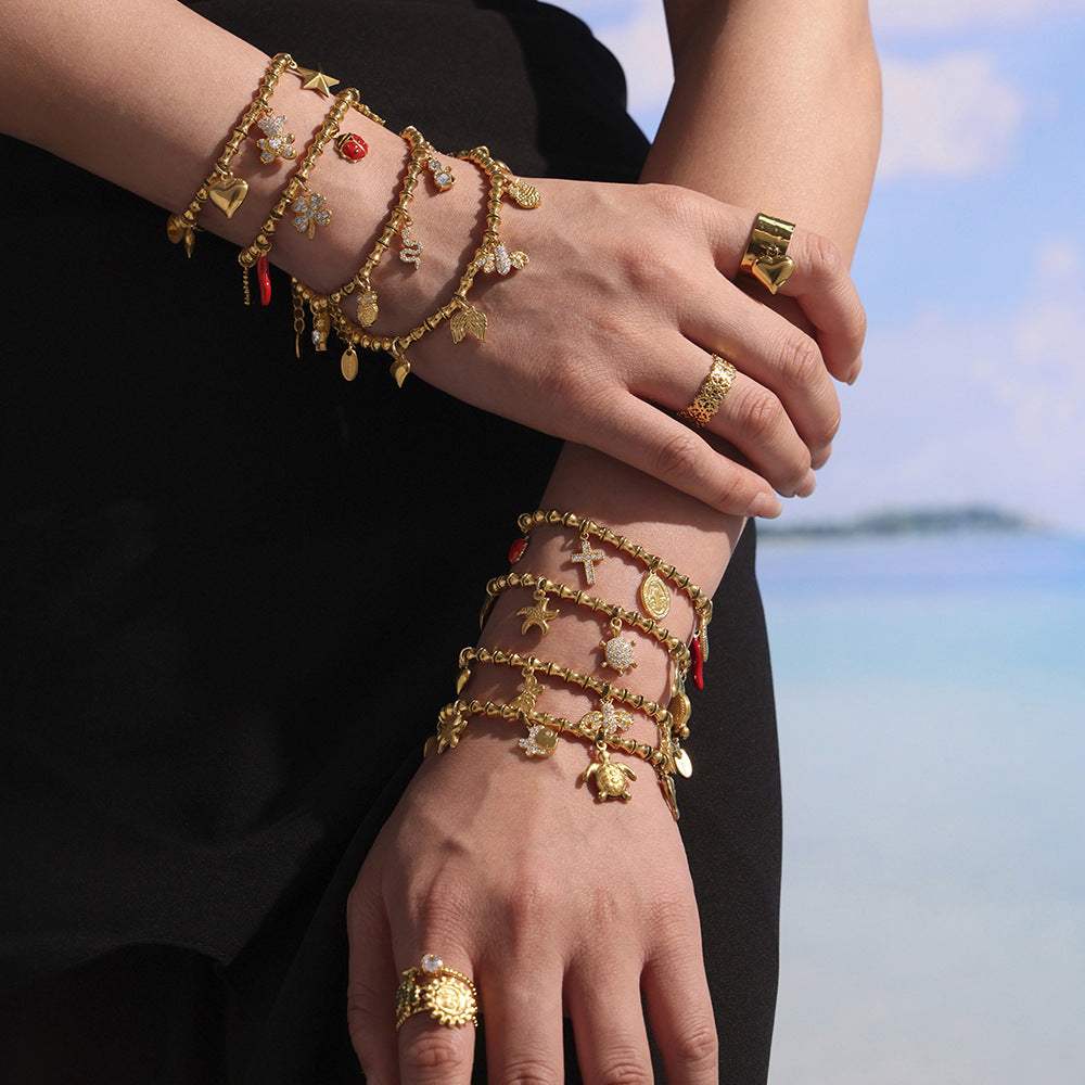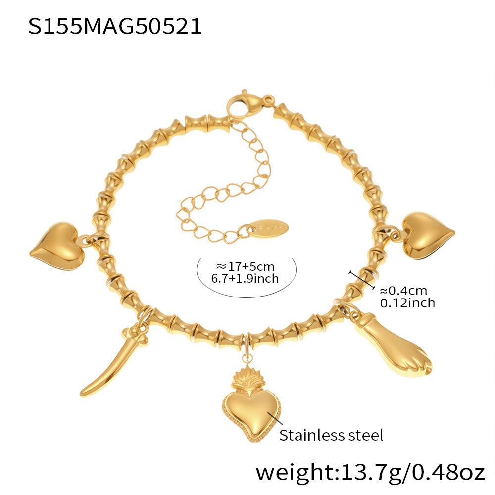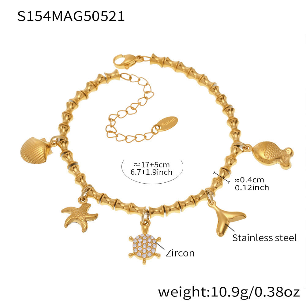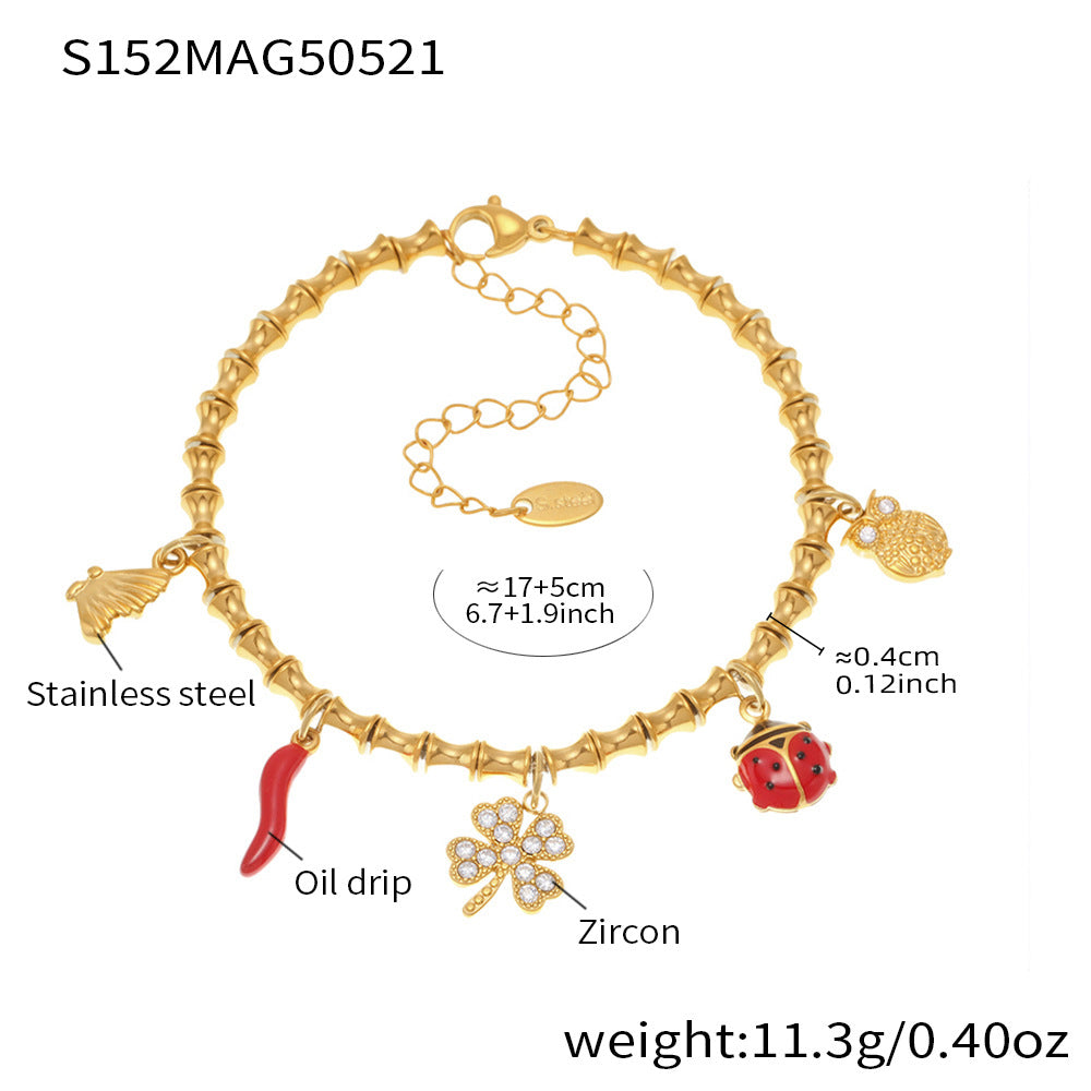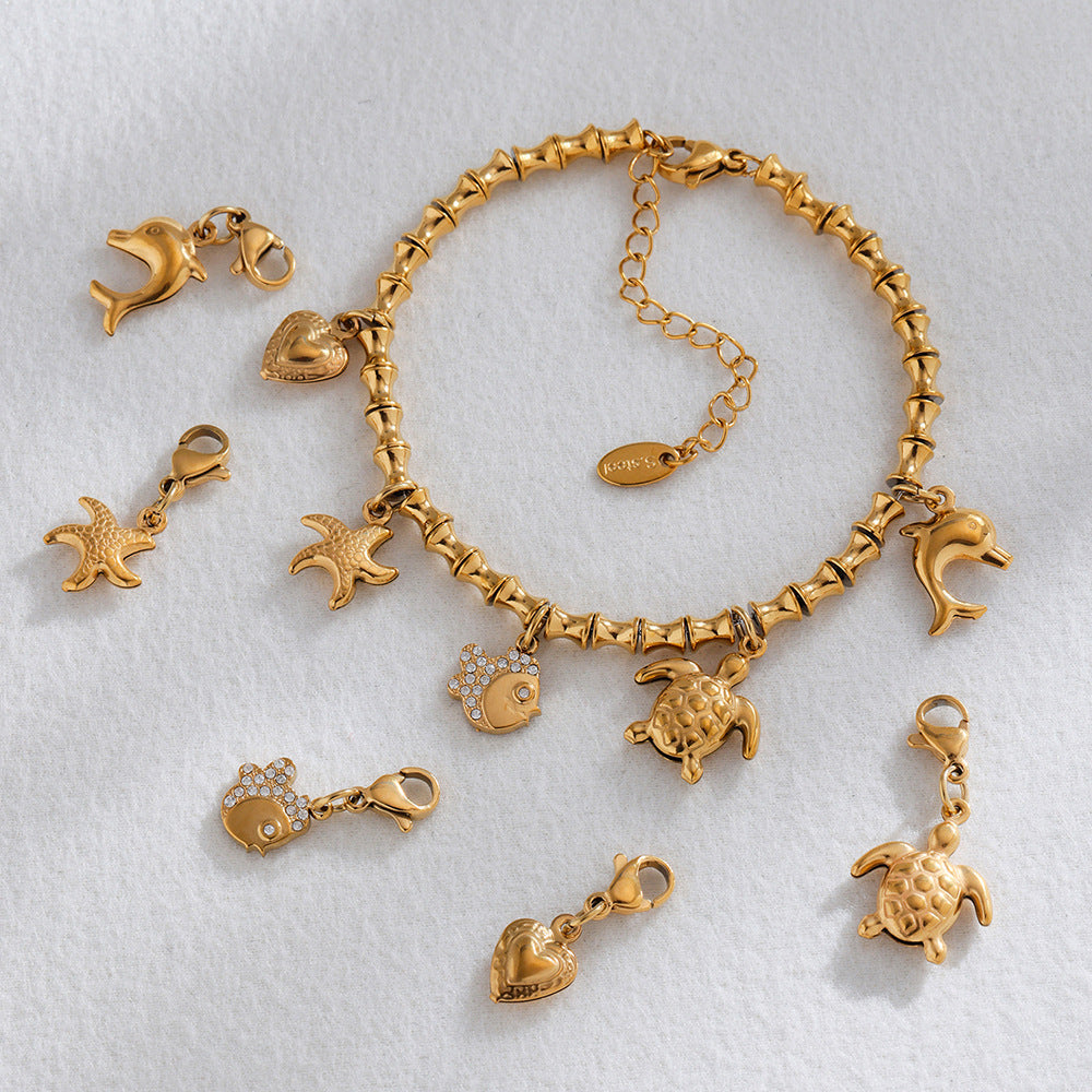 B廠【E622】歐美INS風不鏽鋼5A鋯石幾何多配件DIY手鍊組合款鍍18k真金 25.05-5