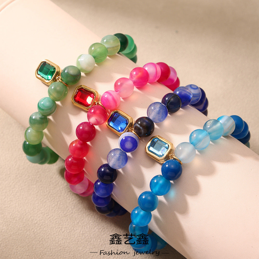 B廠【E661】輕奢小眾設計不鏽鋼方形吊墜瑪瑙石串珠手鍊跨境時尚首飾 25.06-4