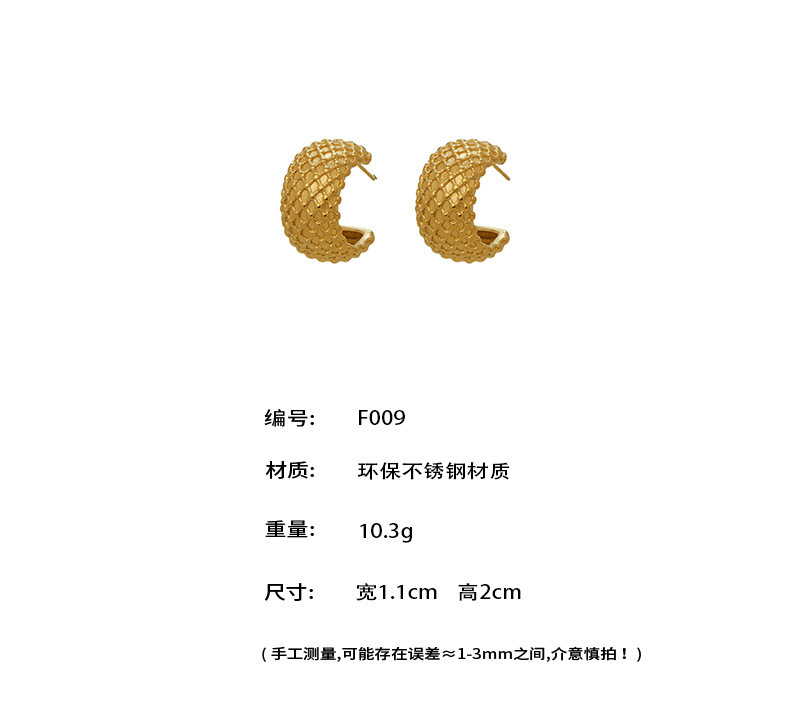 B廠【F009】歐美INS幾何C形網格菱形耳環跨國時尚簡約輕奢耳環不鏽鋼鍍金飾品 26.02-1