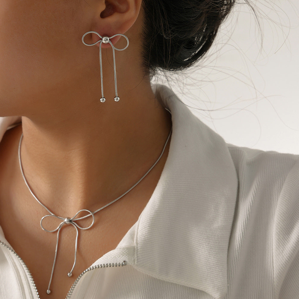 B廠【F015-P022】歐美ins網紅同款抽拉蝴蝶設計項鍊金色鈦鋼鎖骨鏈不掉色飾品套裝 24.04-2