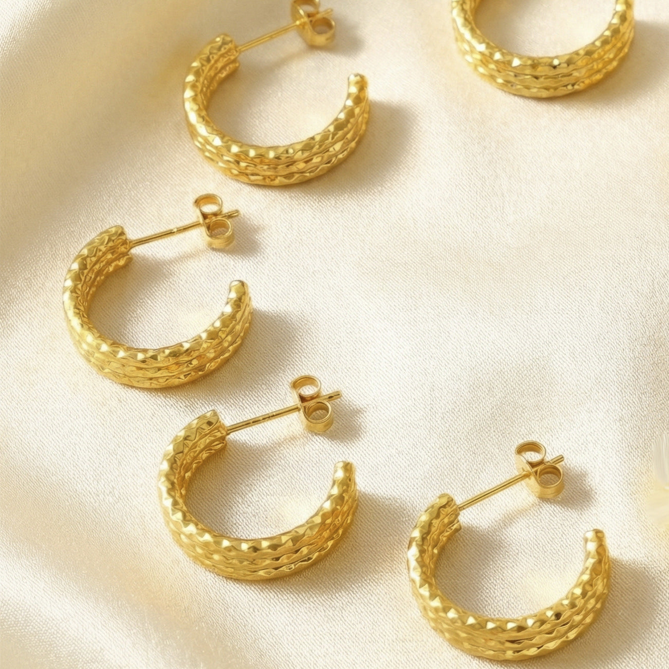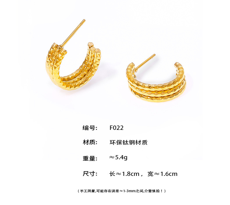 B廠【F022】歐美輕奢風小眾設計感三層C形紋理不鏽鋼鍍金耳環簡約氣質耳環女 26.02-1