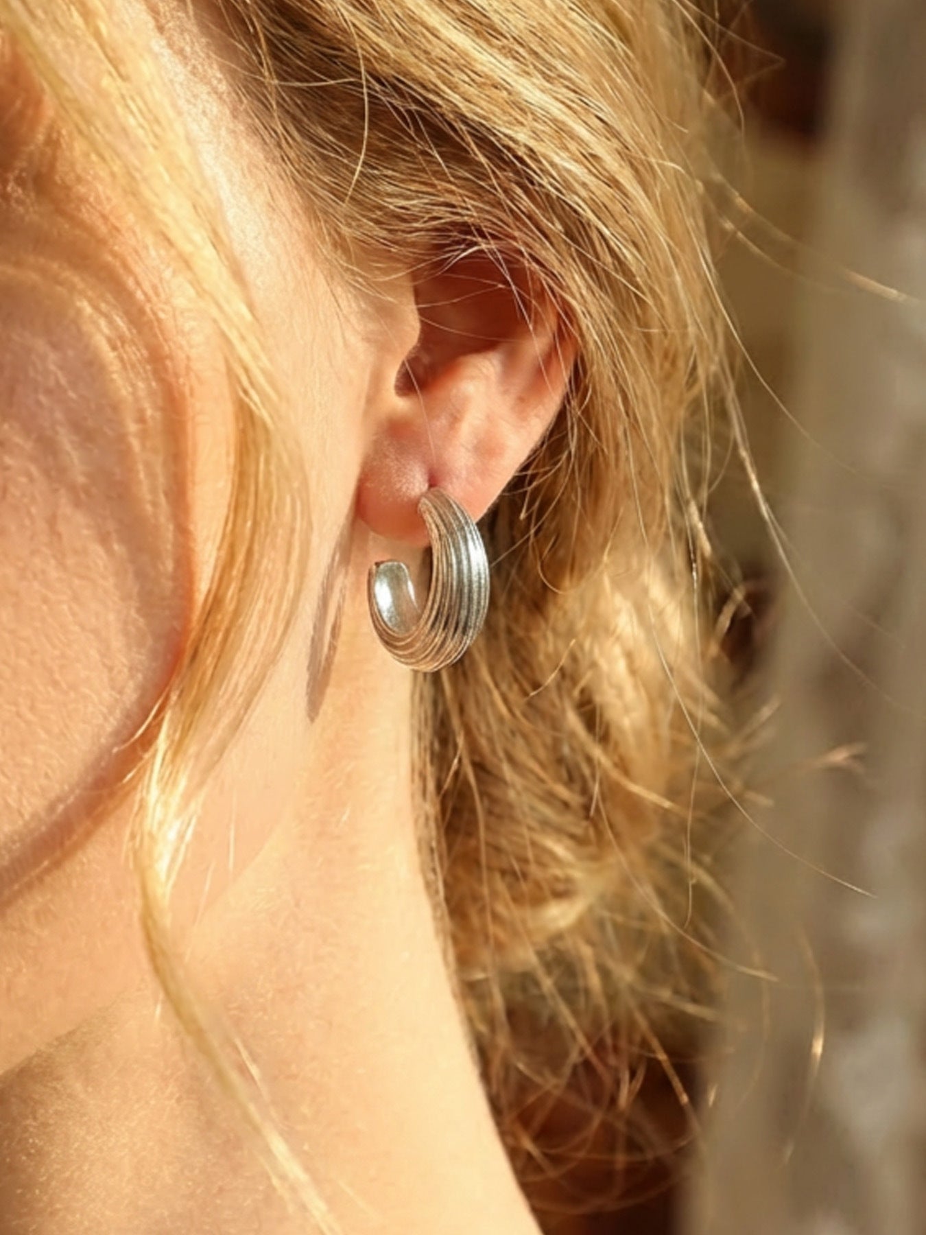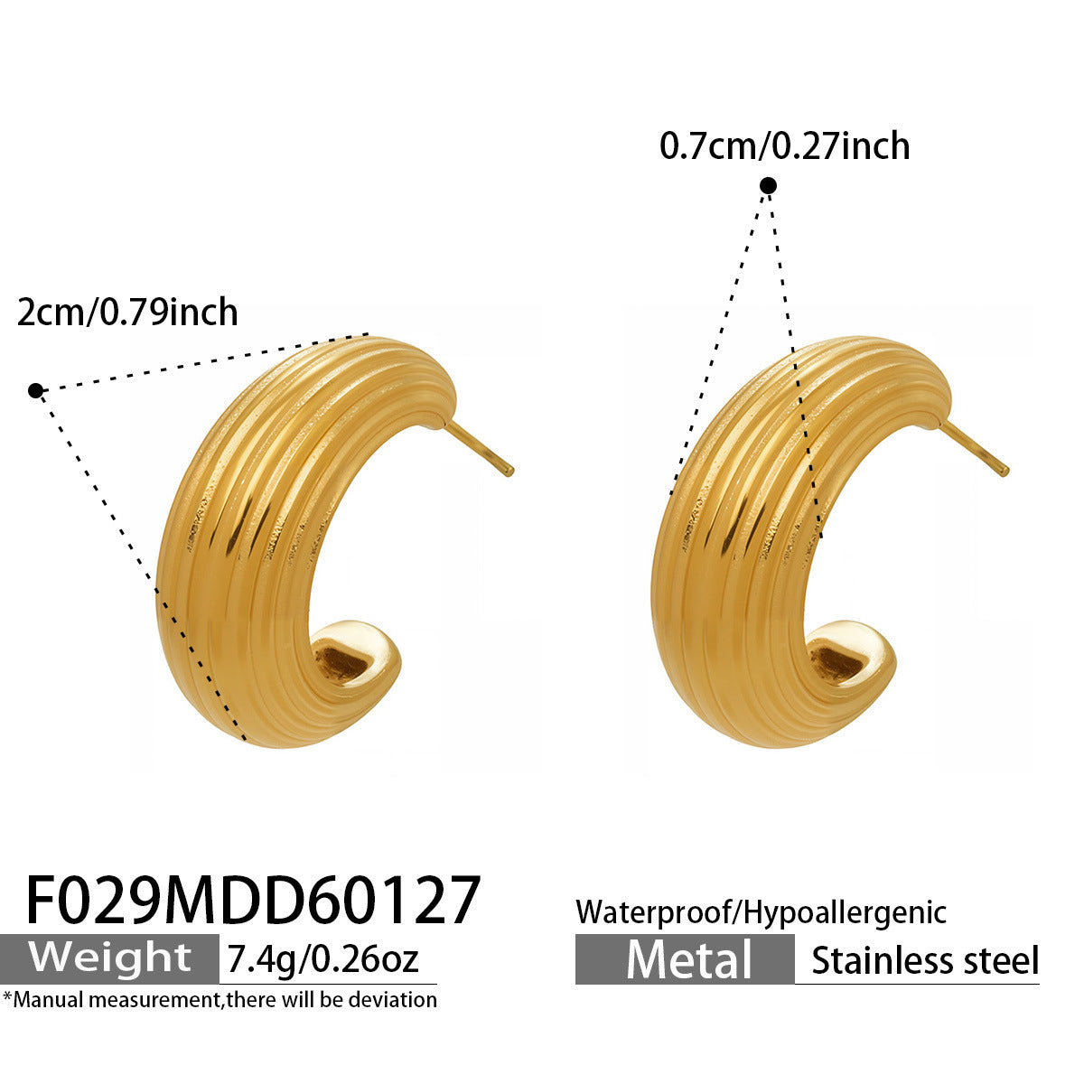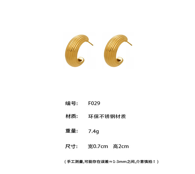 B廠【F029】歐美小眾設計感條紋C型耳環不鏽鋼鍍金小耳圈個性時尚百搭耳飾女 26.02-1