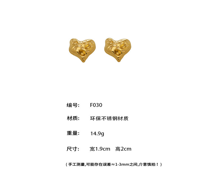 B廠【F030】跨國時尚輕奢小桃心錘紋耳環歐美ins簡約設計耳飾不鏽鋼鍍18k真金 26.02-1