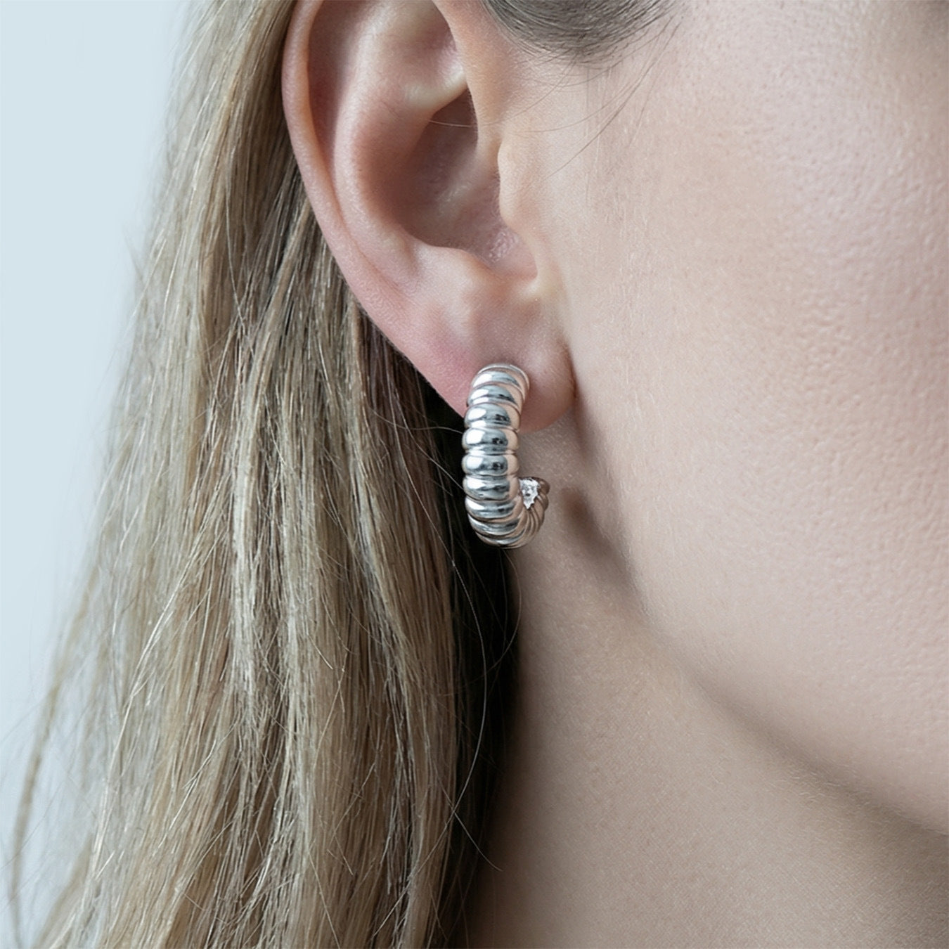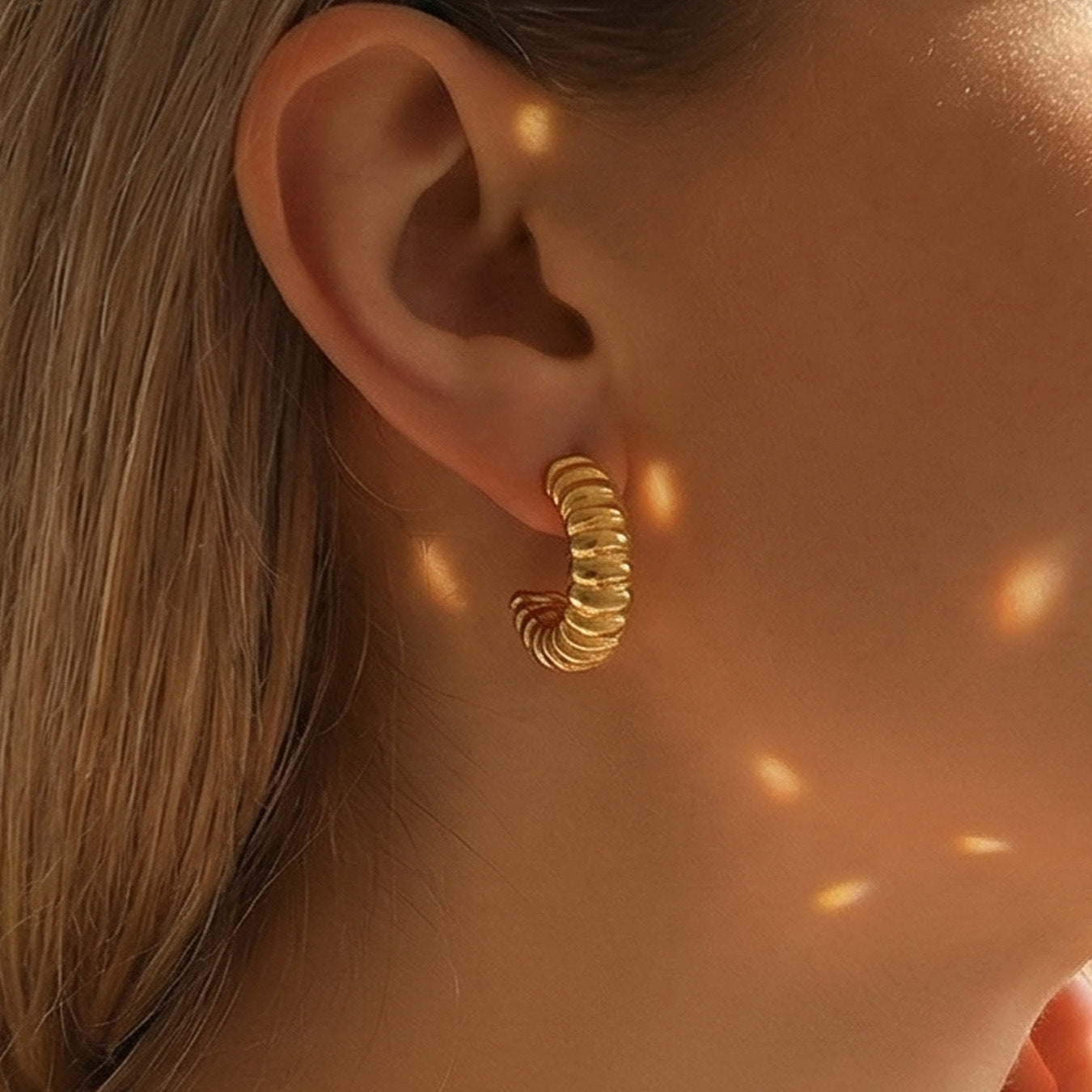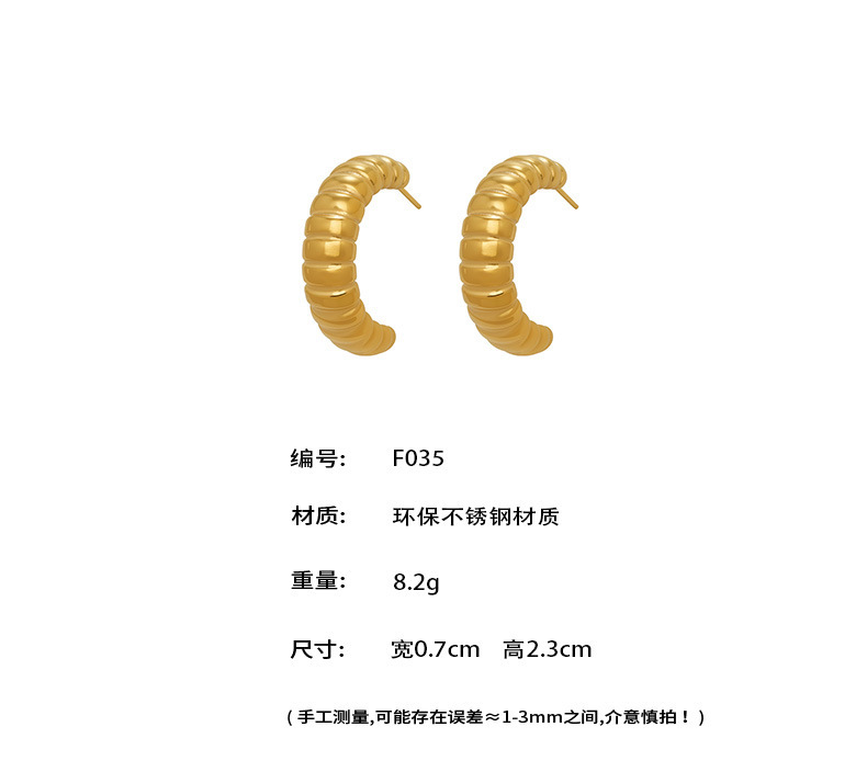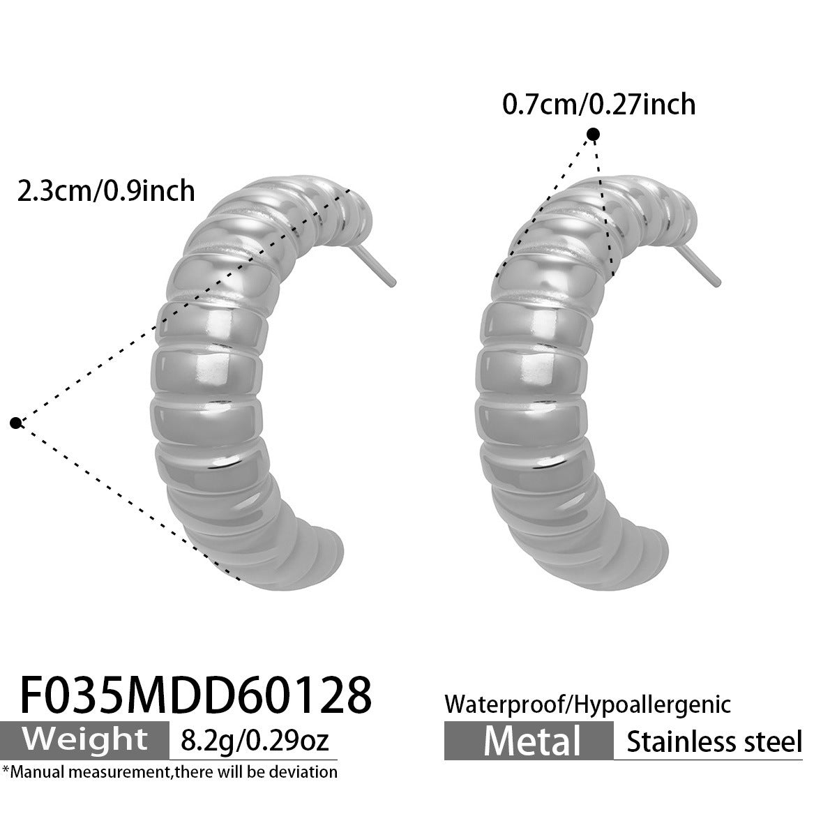 B廠【F035】歐美時尚螺紋C型時尚環形耳環ins簡約輕奢風百搭耳環不鏽鋼耳環女 26.02-1