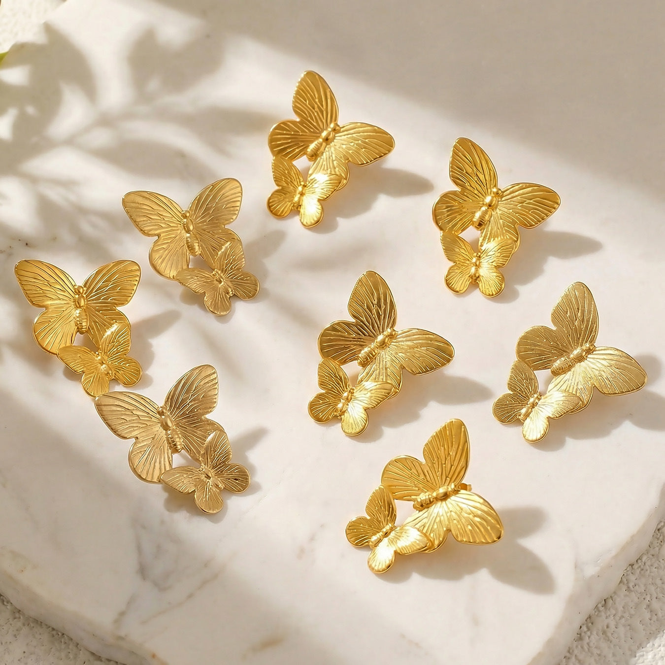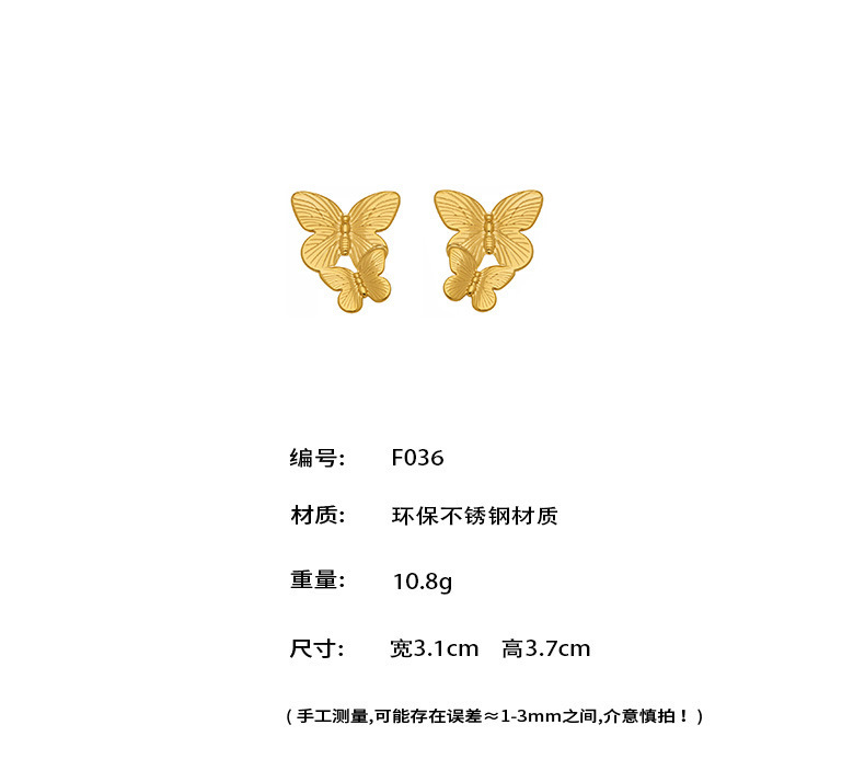 B廠【F036】歐美簡約chic風幾何蝴蝶紋理造型耳環小眾高級設計不鏽鋼鍍金耳環 26.02-1