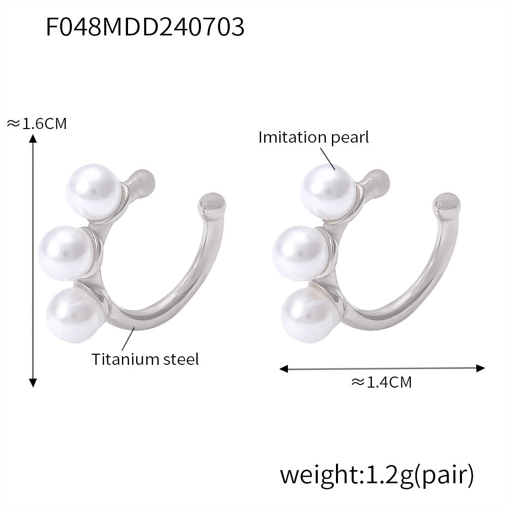 B廠【F048】歐美氣質優雅U形鑲嵌仿珍珠設計感鈦鋼鍍金耳環女個性百搭飾品 24.07-2