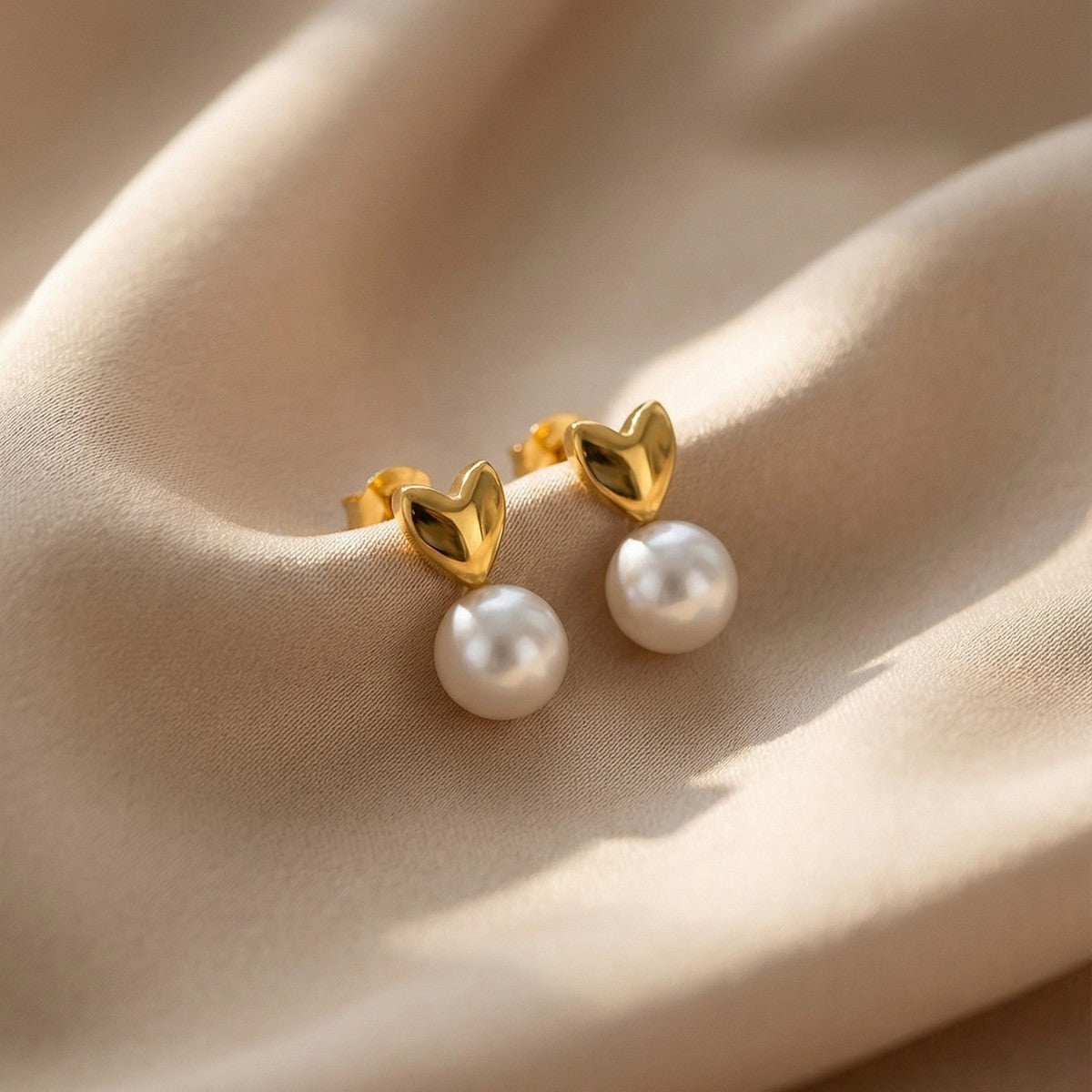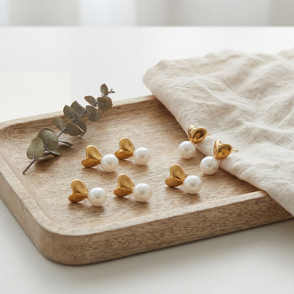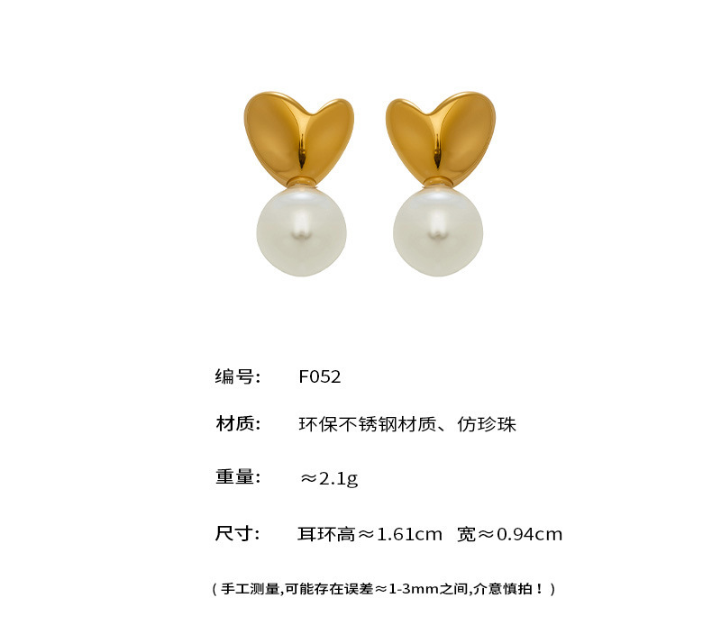 B廠【F052】歐美輕奢小眾ins風仿珍珠愛心耳環不鏽鋼材質鍍18k真金不掉色耳環 26.02-1