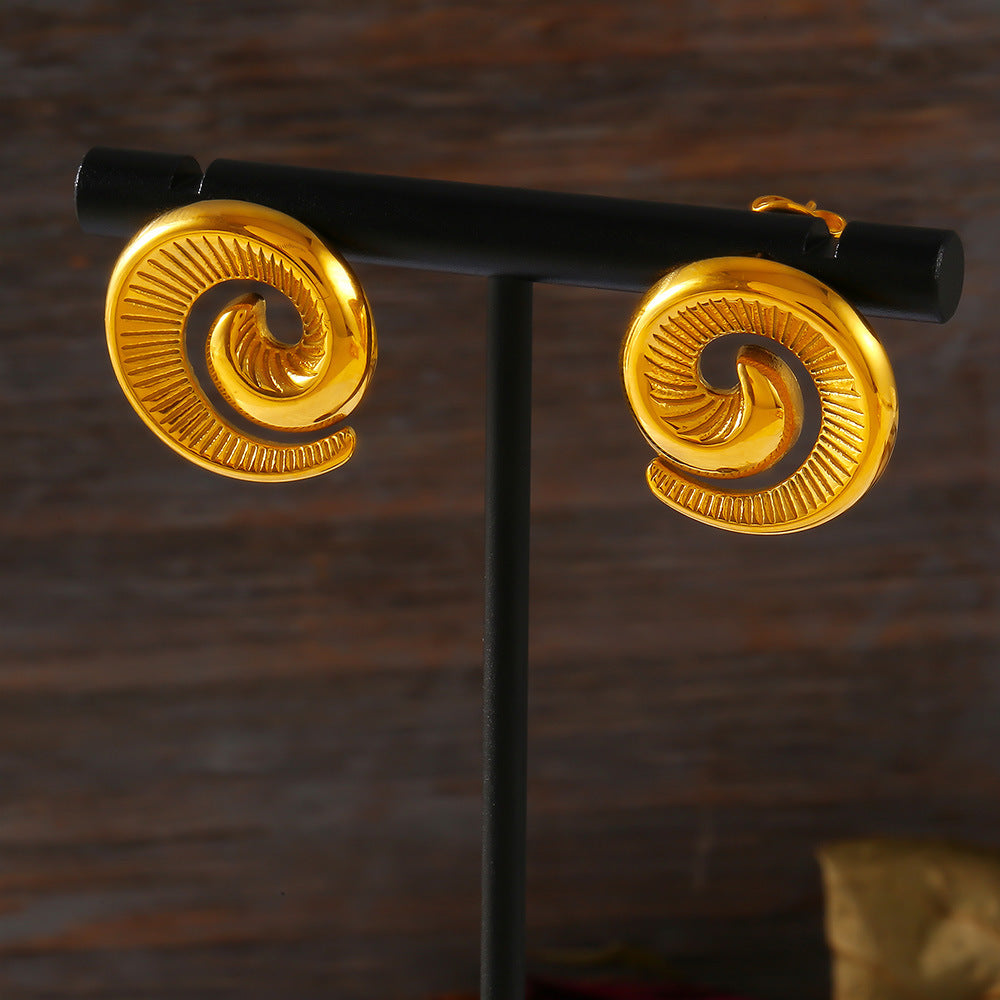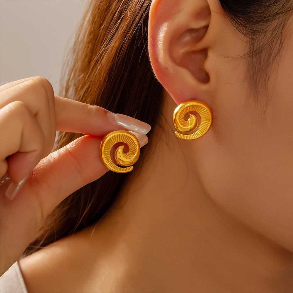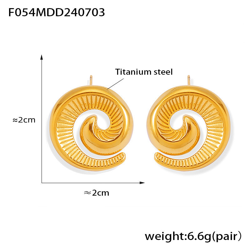 B廠【F054】時尚新款冷淡風鈦鋼鍍18k金旋轉創意螺紋設計耳環不褪色耳環飾品 24.07-2